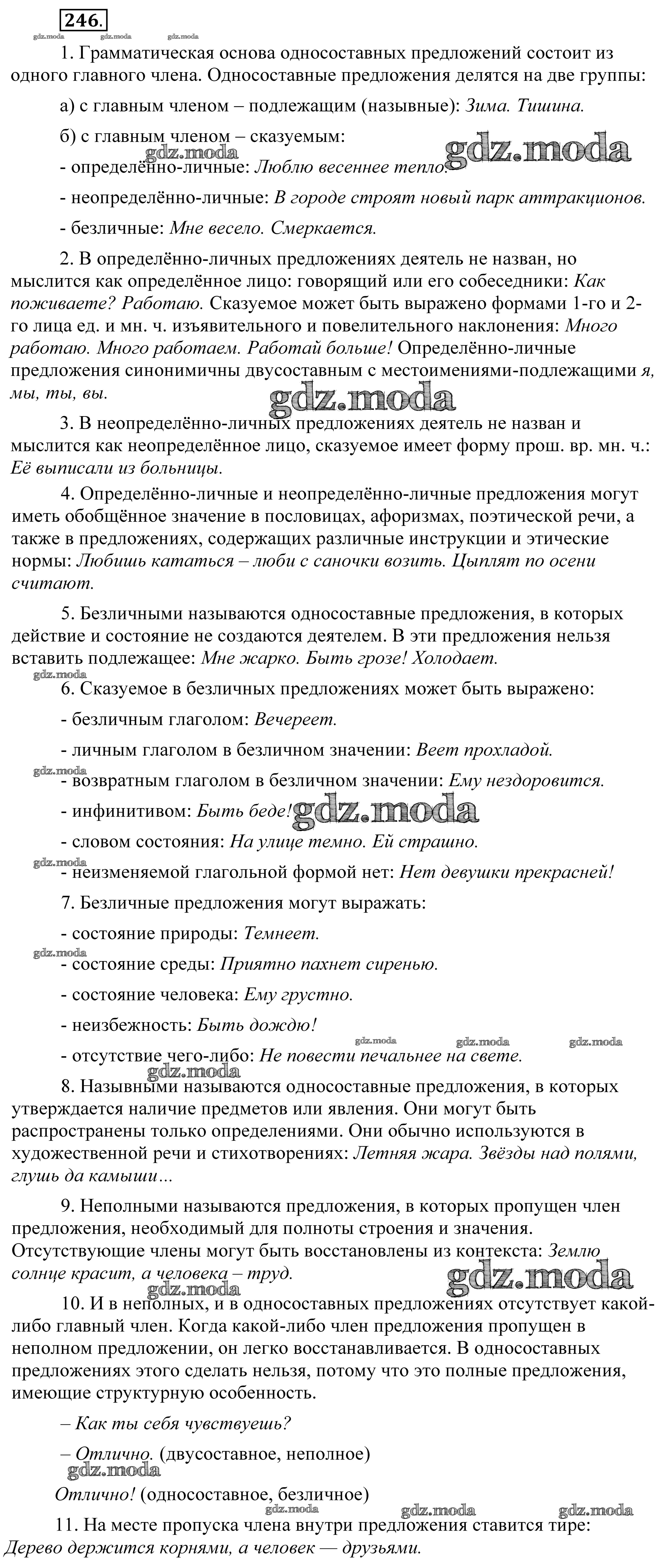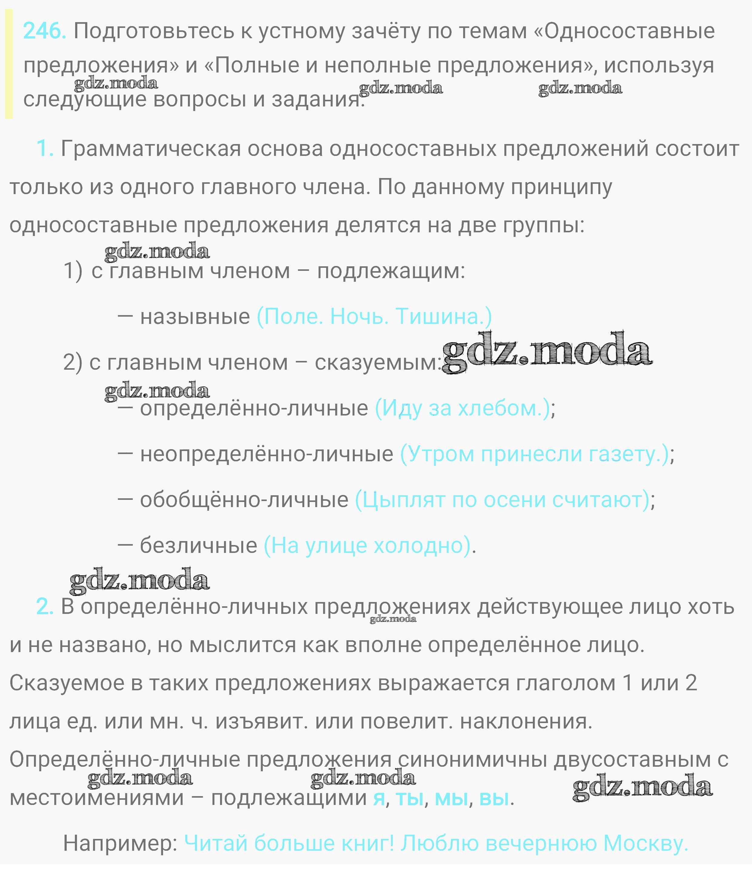 ОТВЕТ на задание № 246 Практика по Русскому языку 8 класс Пичугов Вертикаль