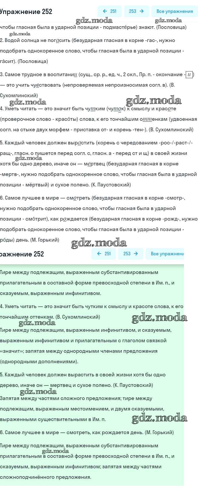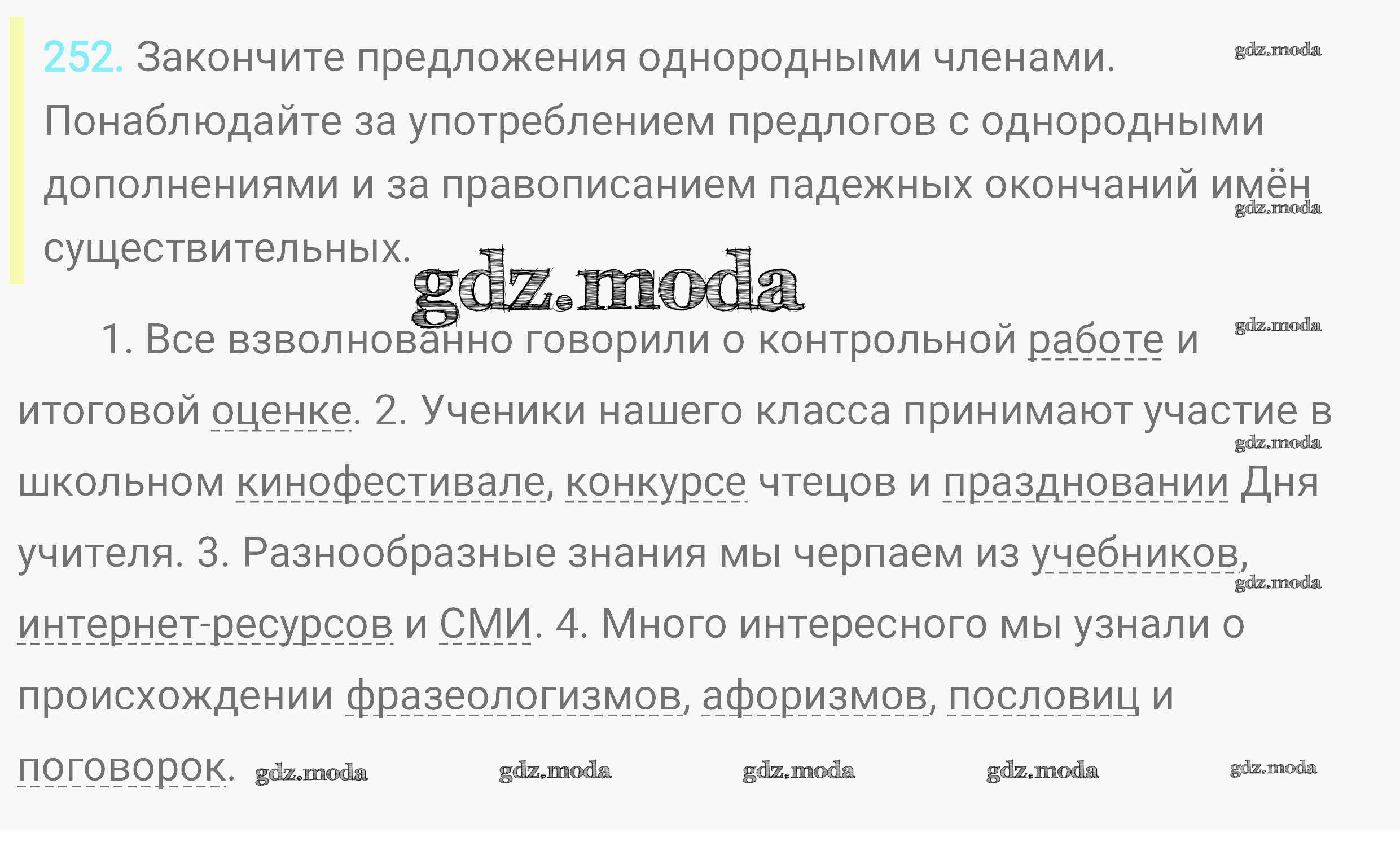 ОТВЕТ на задание № 252 Практика по Русскому языку 8 класс Пичугов Вертикаль