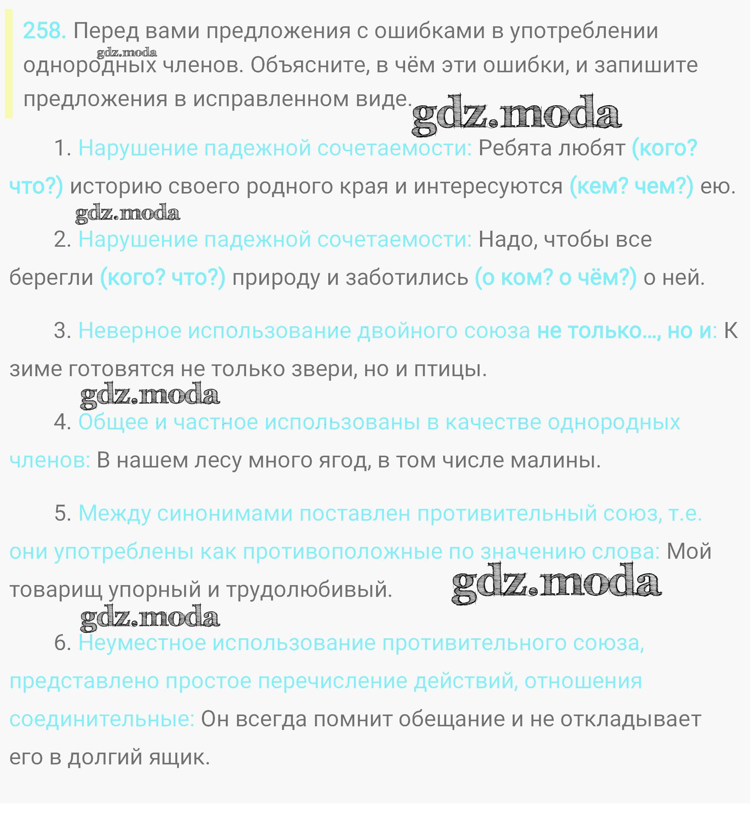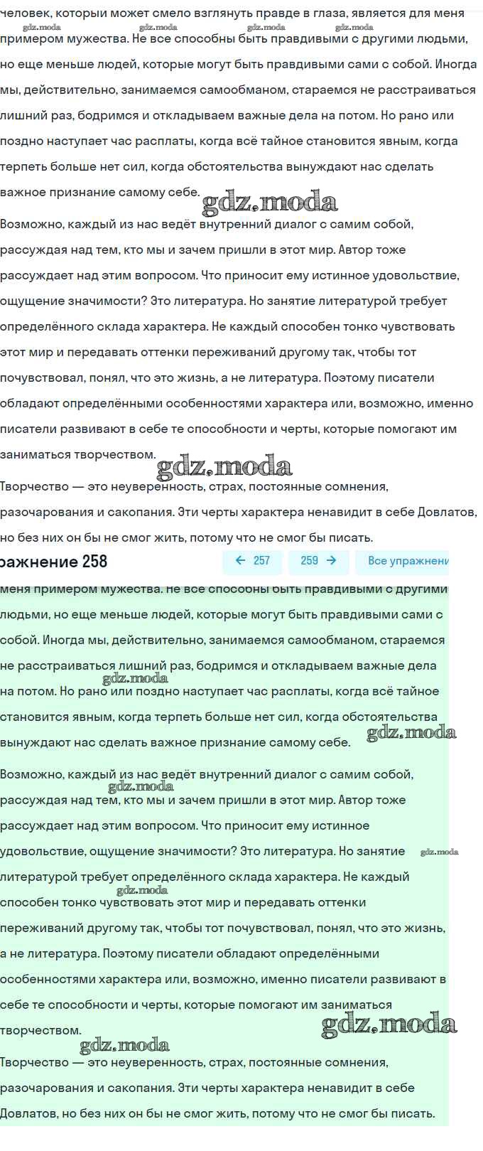 ОТВЕТ на задание № 258 Практика по Русскому языку 8 класс Пичугов Вертикаль