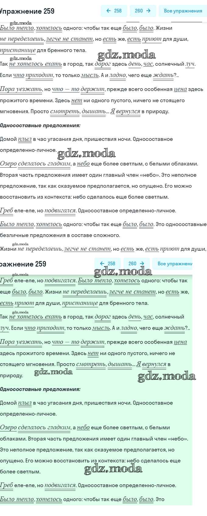 ОТВЕТ на задание № 259 Практика по Русскому языку 8 класс Пичугов Вертикаль