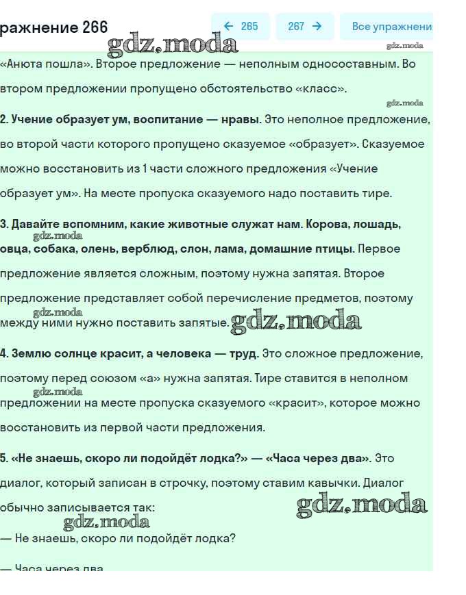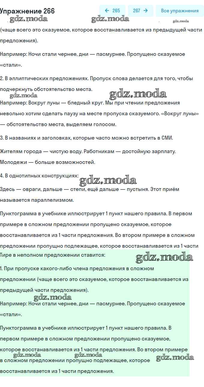 ОТВЕТ на задание № 266 Практика по Русскому языку 8 класс Пичугов Вертикаль