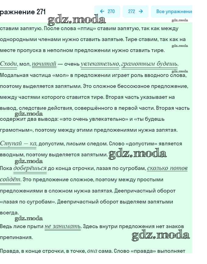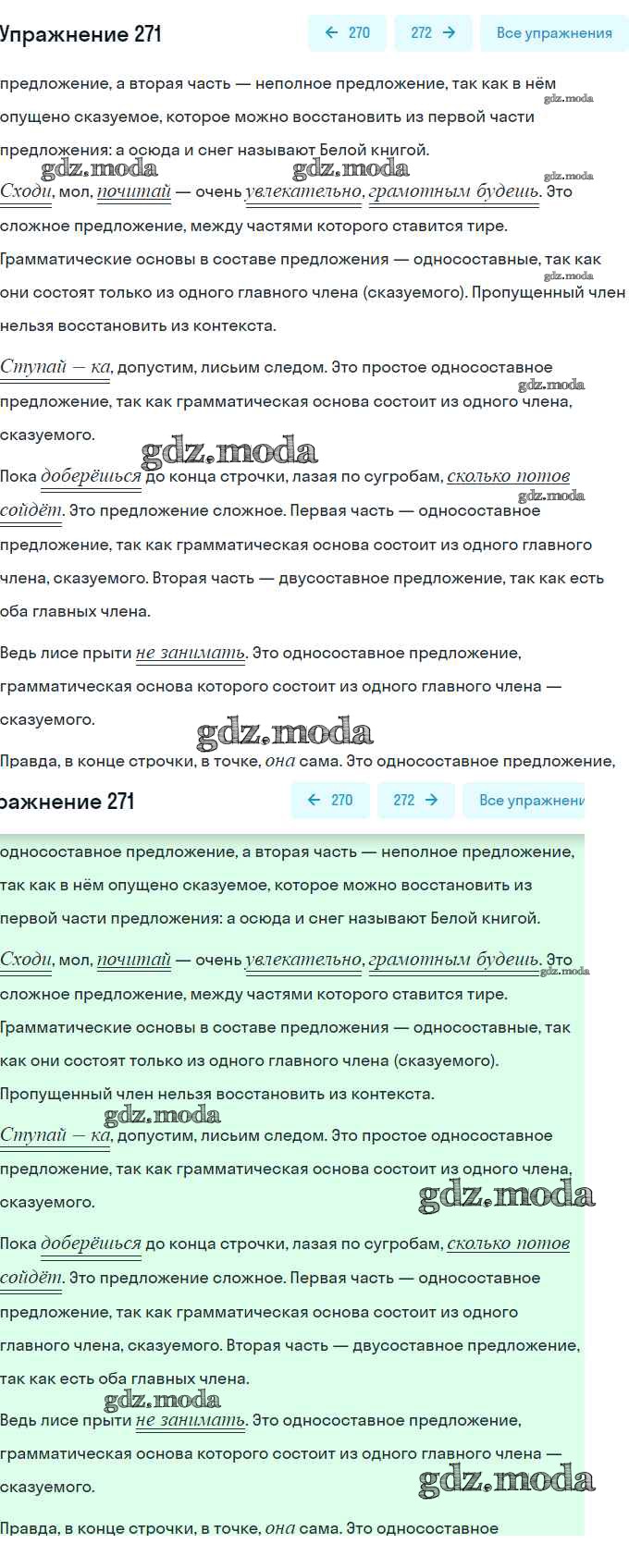 ОТВЕТ на задание № 271 Практика по Русскому языку 8 класс Пичугов Вертикаль
