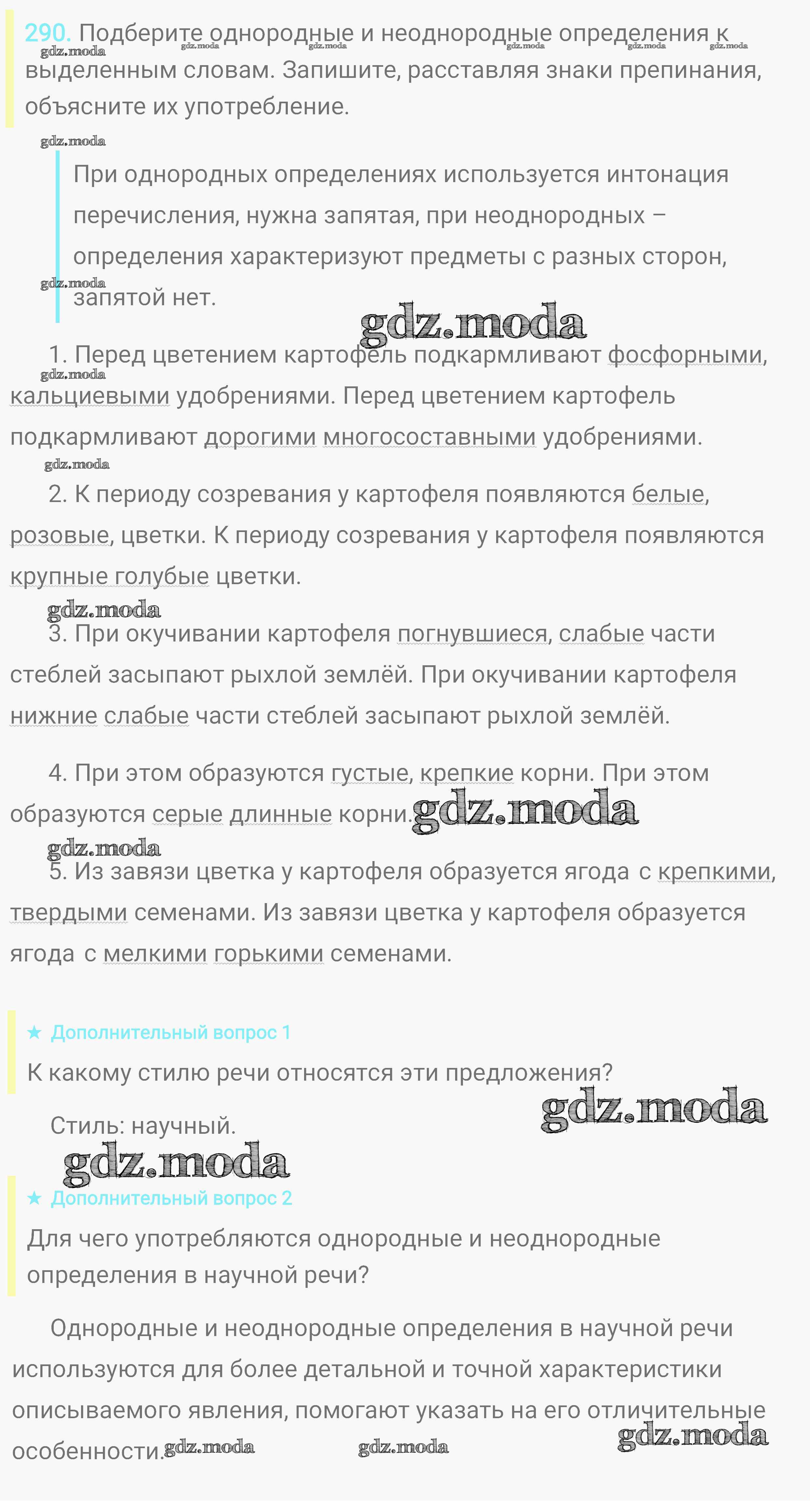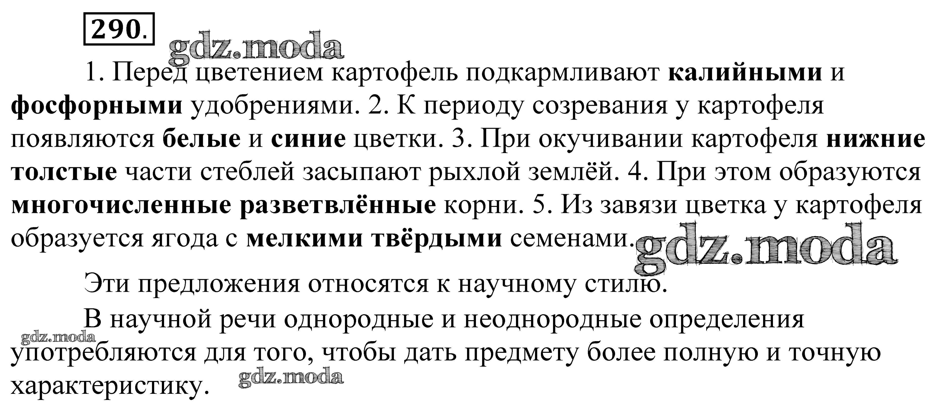 ОТВЕТ на задание № 290 Практика по Русскому языку 8 класс Пичугов Вертикаль
