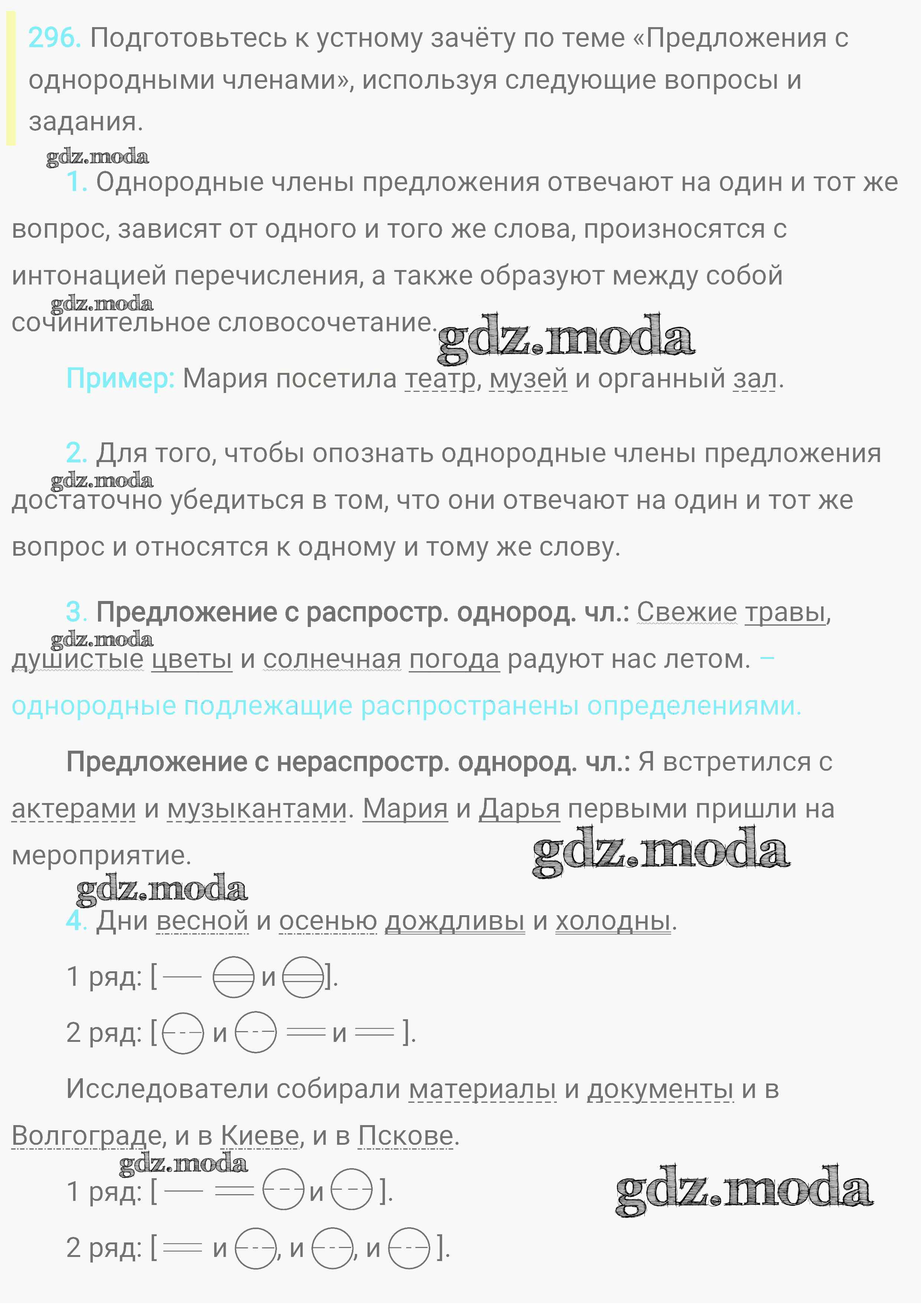 ОТВЕТ на задание № 296 Практика по Русскому языку 8 класс Пичугов Вертикаль