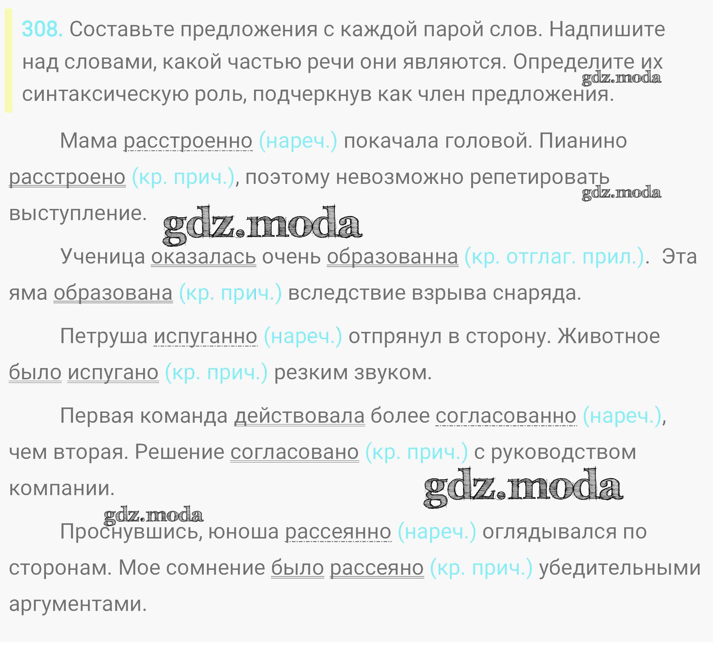 ОТВЕТ на задание № 308 Практика по Русскому языку 8 класс Пичугов Вертикаль