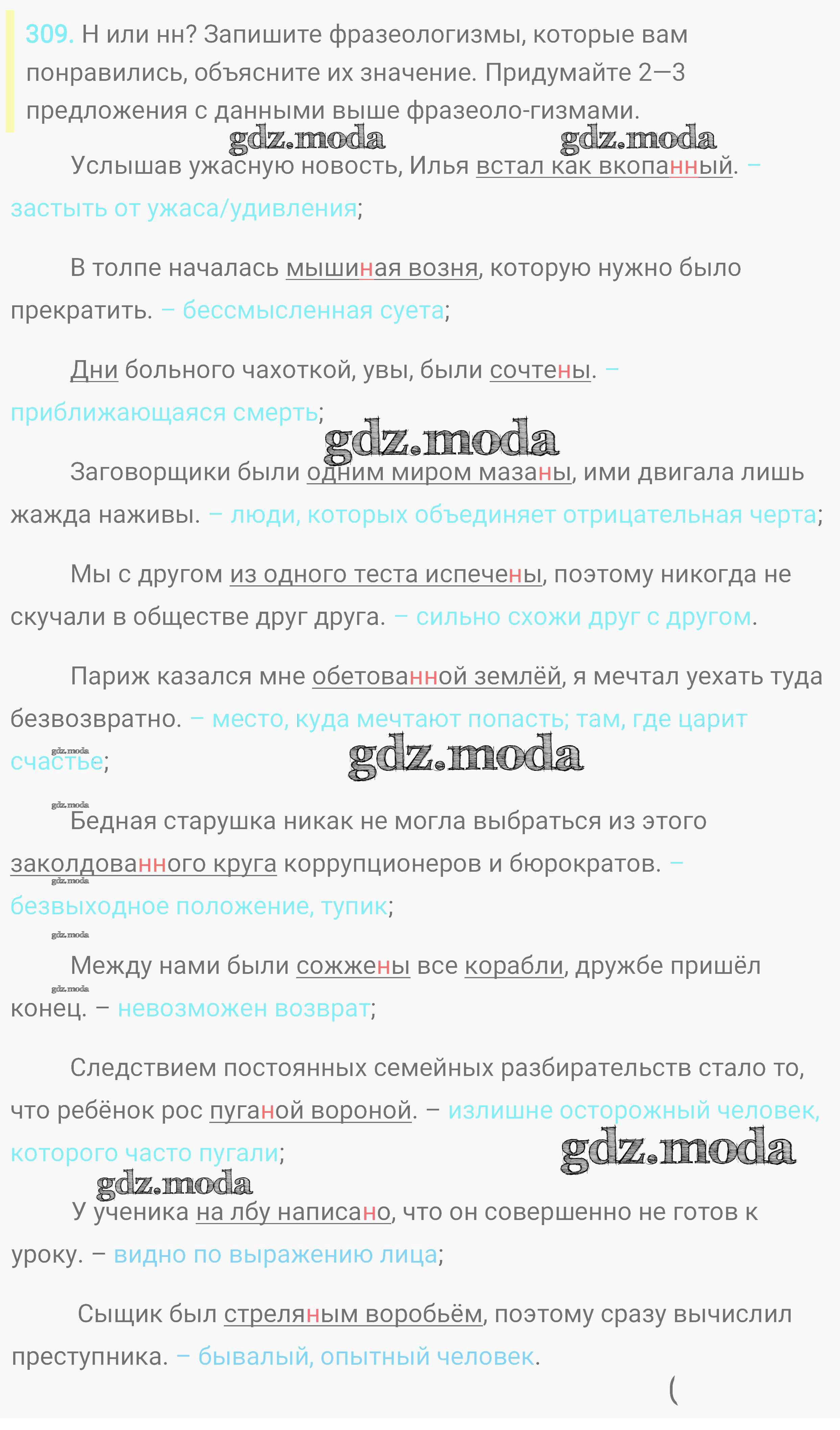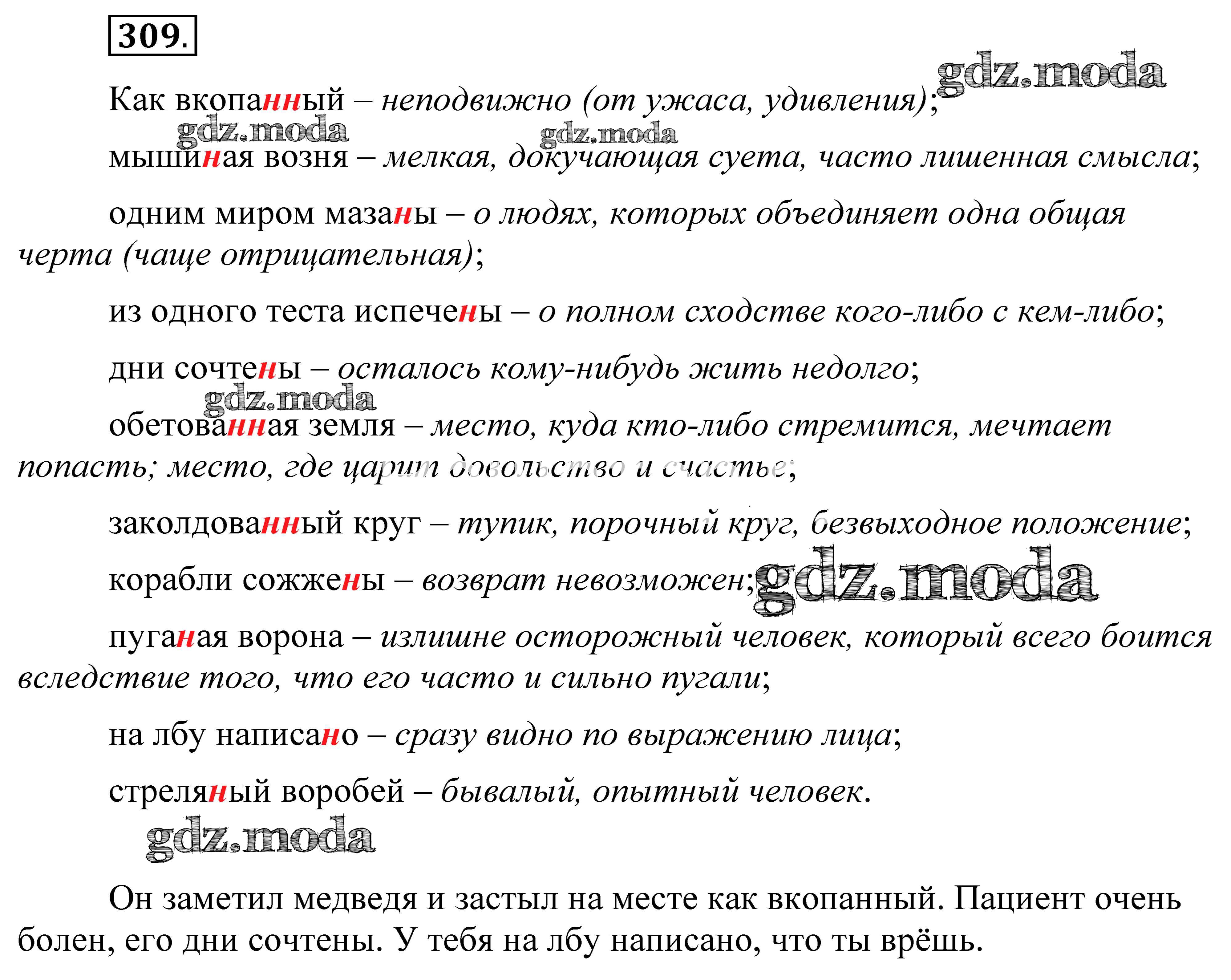 ОТВЕТ на задание № 309 Практика по Русскому языку 8 класс Пичугов Вертикаль