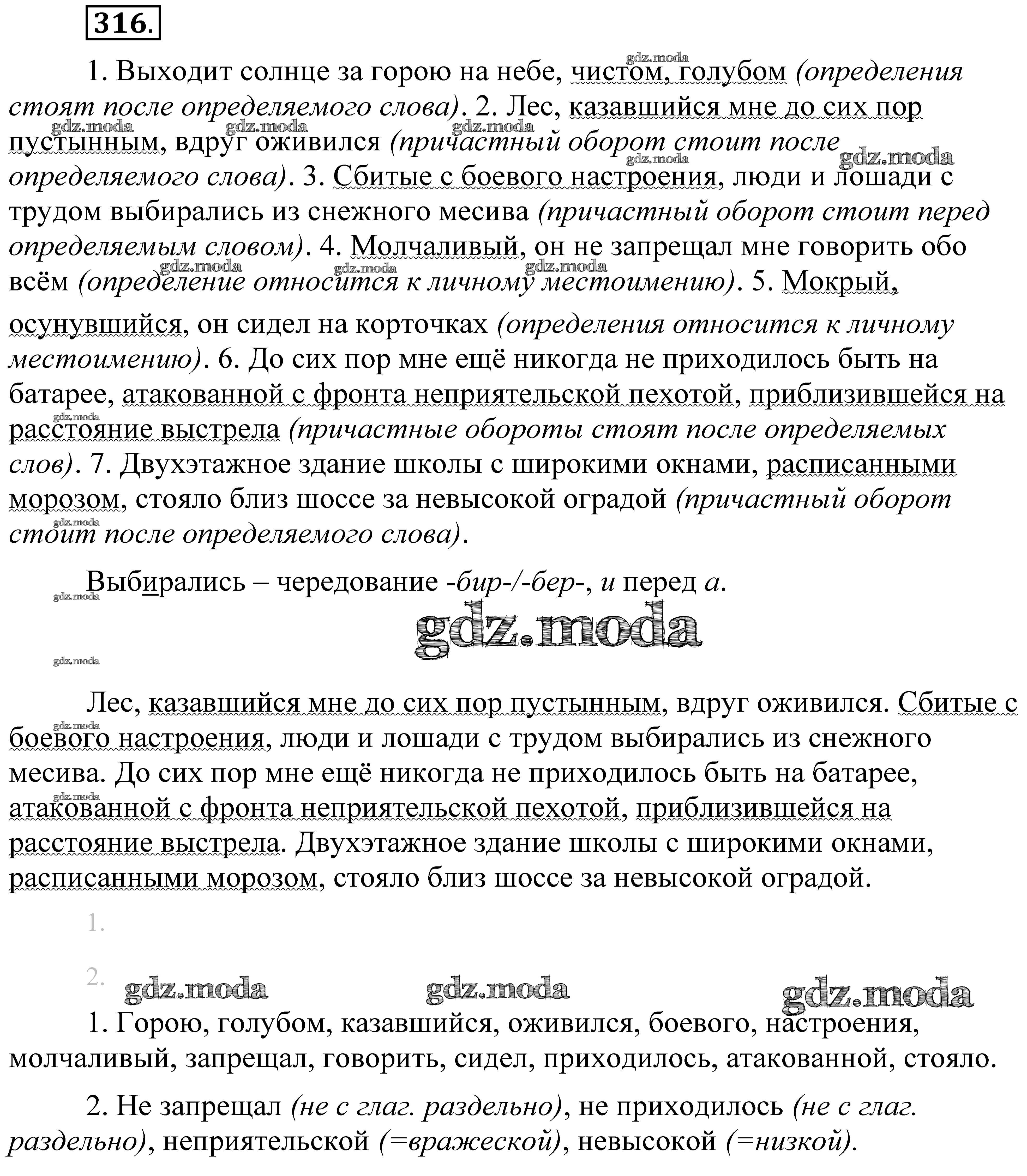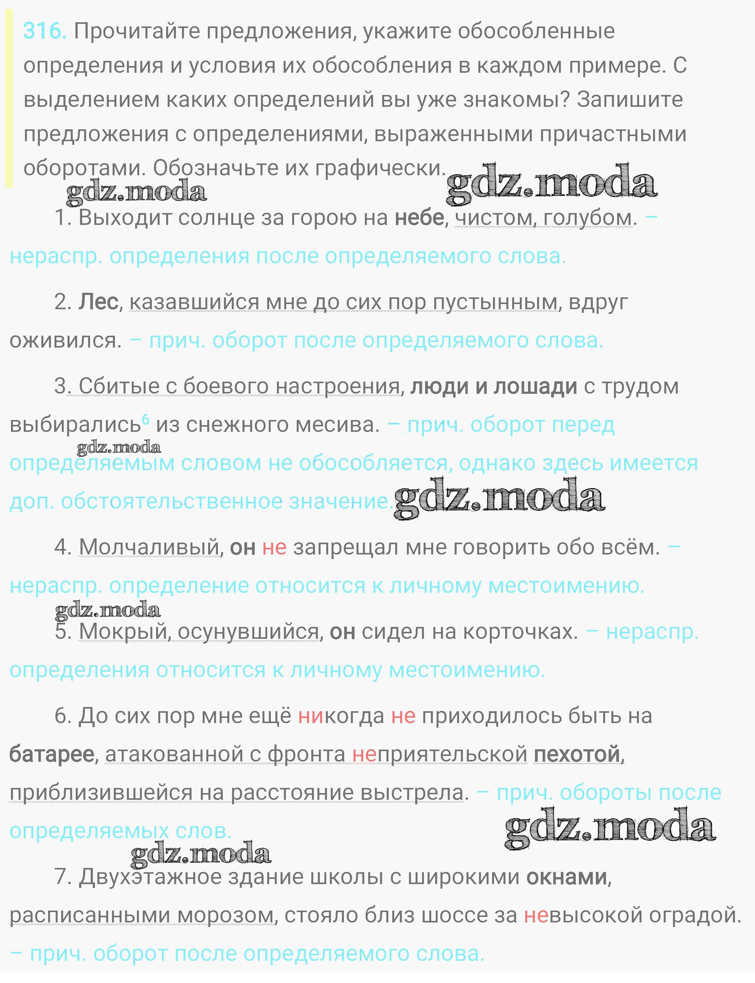 ОТВЕТ на задание № 316 Практика по Русскому языку 8 класс Пичугов Вертикаль