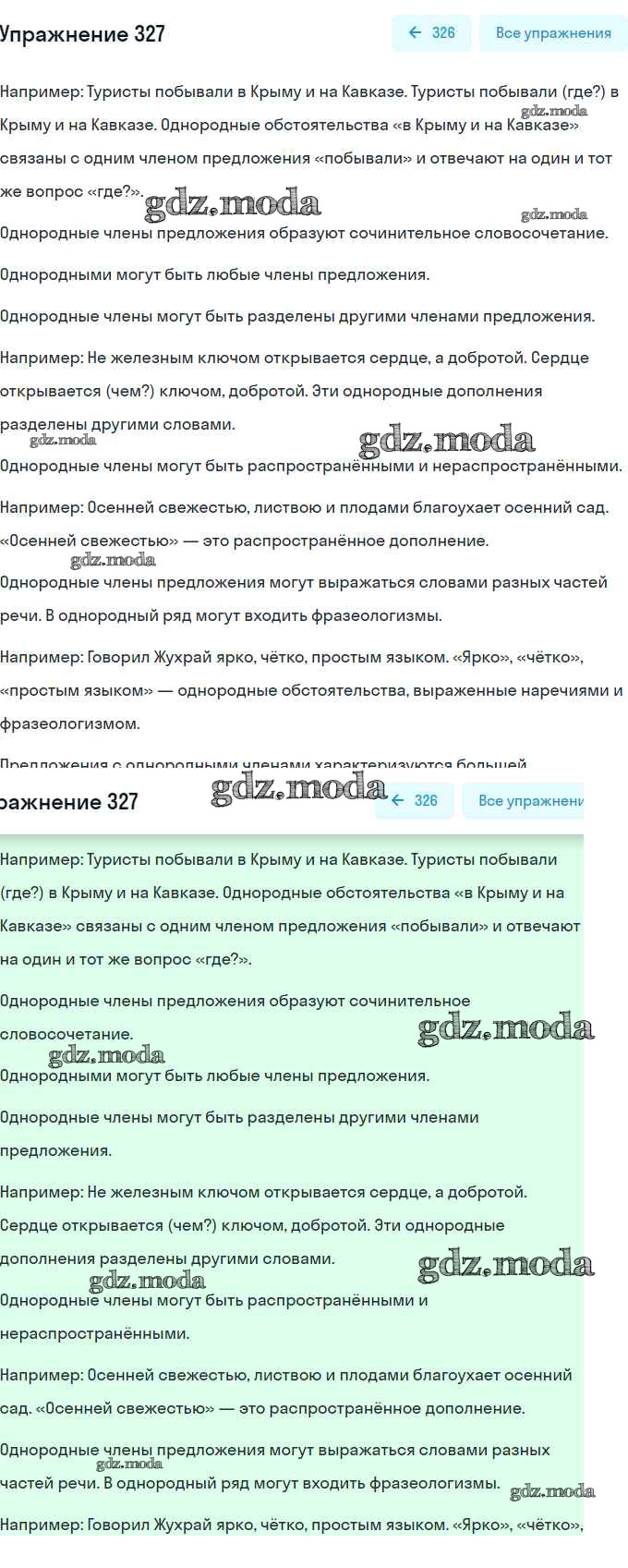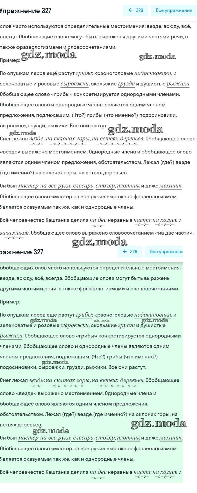 ОТВЕТ на задание № 327 Практика по Русскому языку 8 класс Пичугов Вертикаль