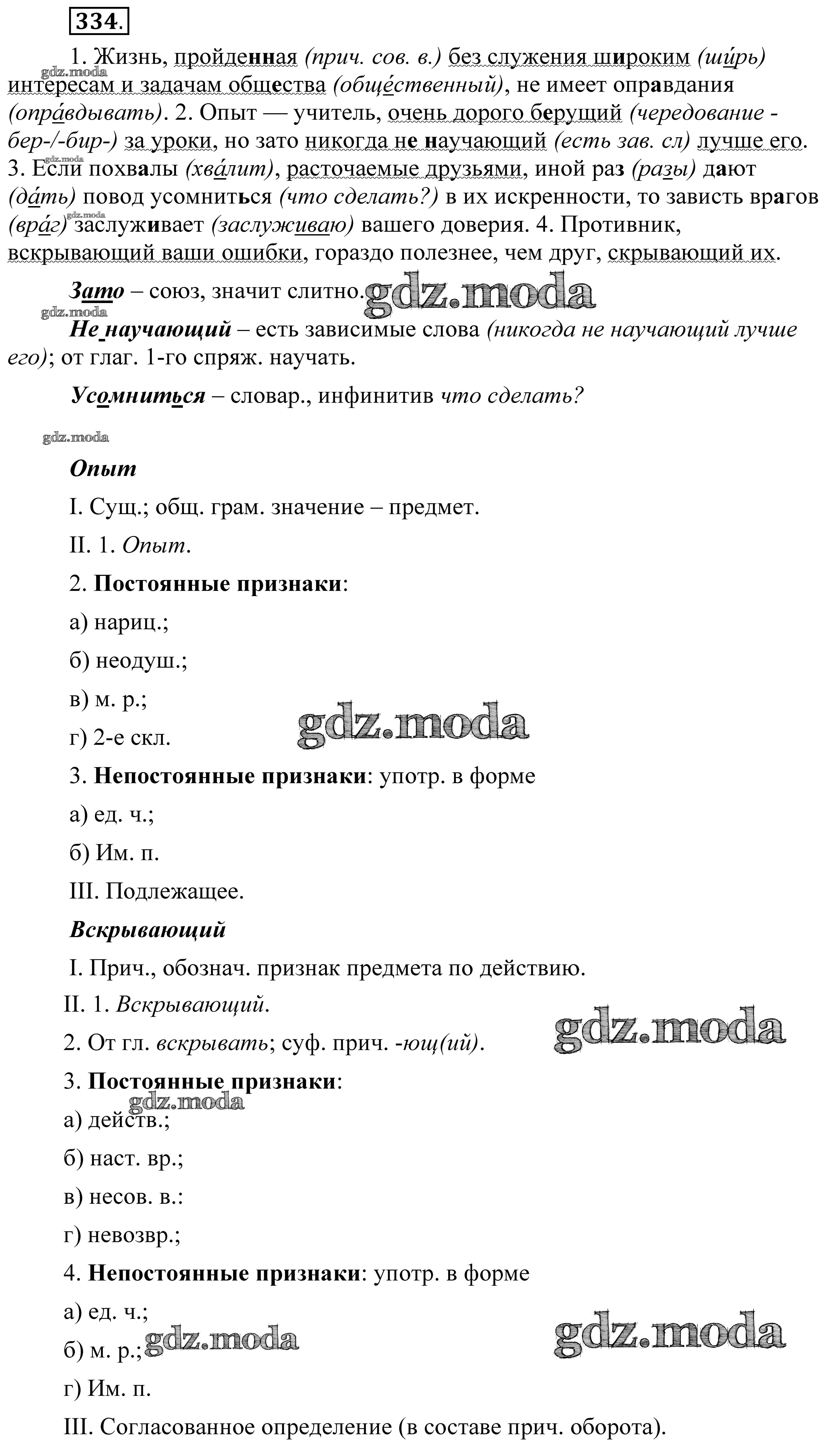 ОТВЕТ на задание № 334 Практика по Русскому языку 8 класс Пичугов Вертикаль