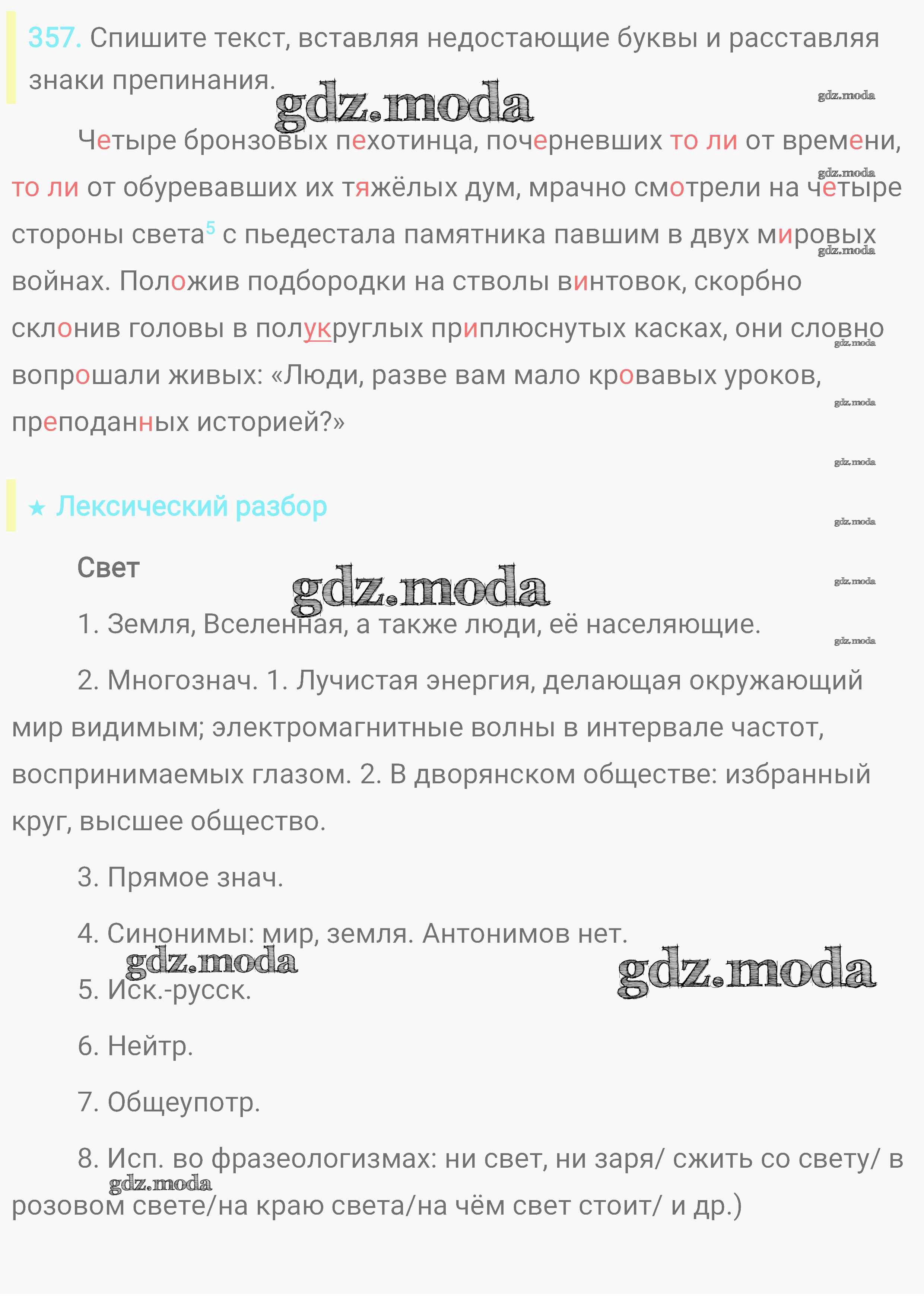 ОТВЕТ на задание № 357 Практика по Русскому языку 8 класс Пичугов Вертикаль