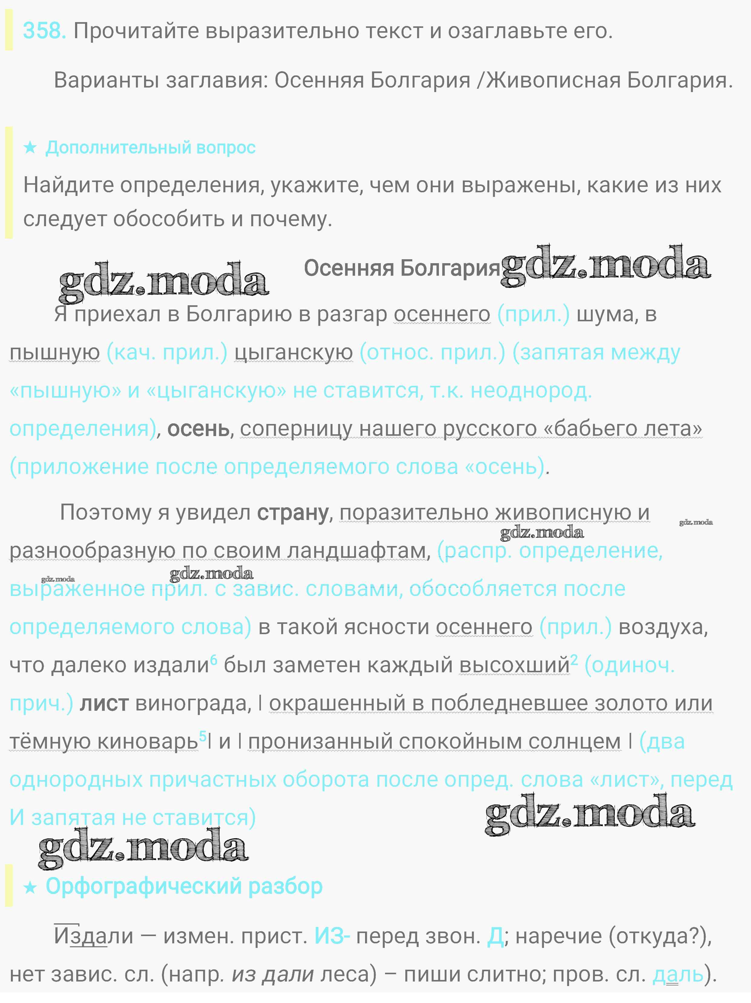 ОТВЕТ на задание № 358 Практика по Русскому языку 8 класс Пичугов Вертикаль