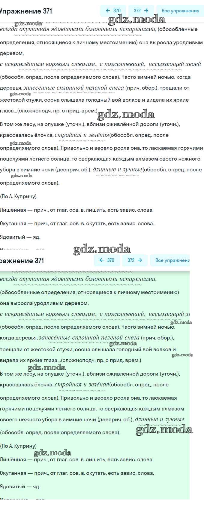 ОТВЕТ на задание № 371 Практика по Русскому языку 8 класс Пичугов Вертикаль