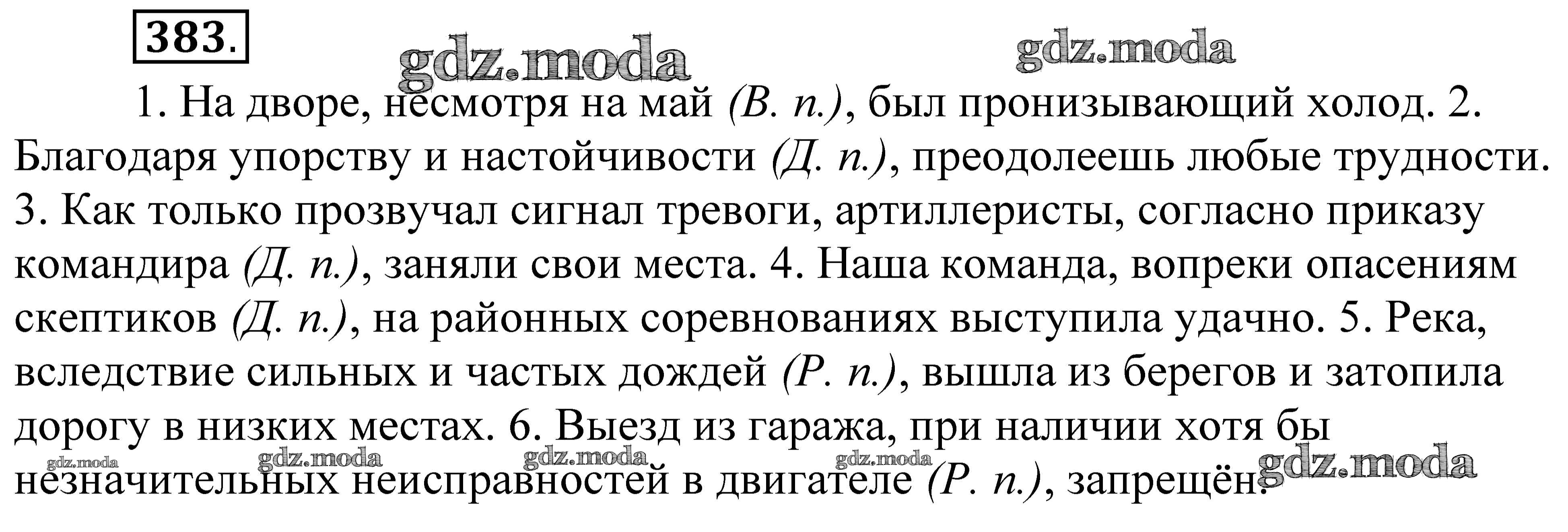 ОТВЕТ на задание № 383 Практика по Русскому языку 8 класс Пичугов Вертикаль