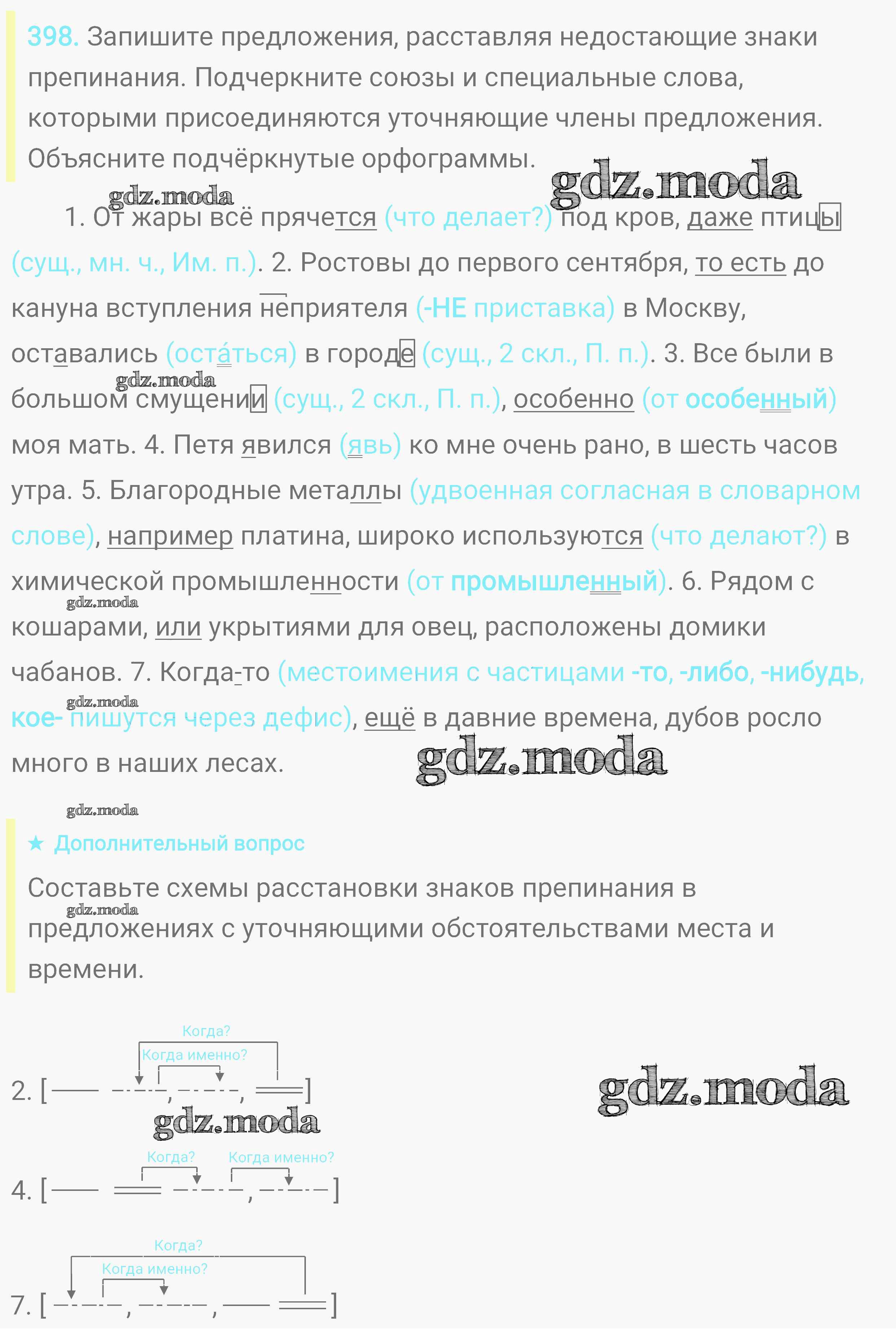 ОТВЕТ на задание № 398 Практика по Русскому языку 8 класс Пичугов Вертикаль