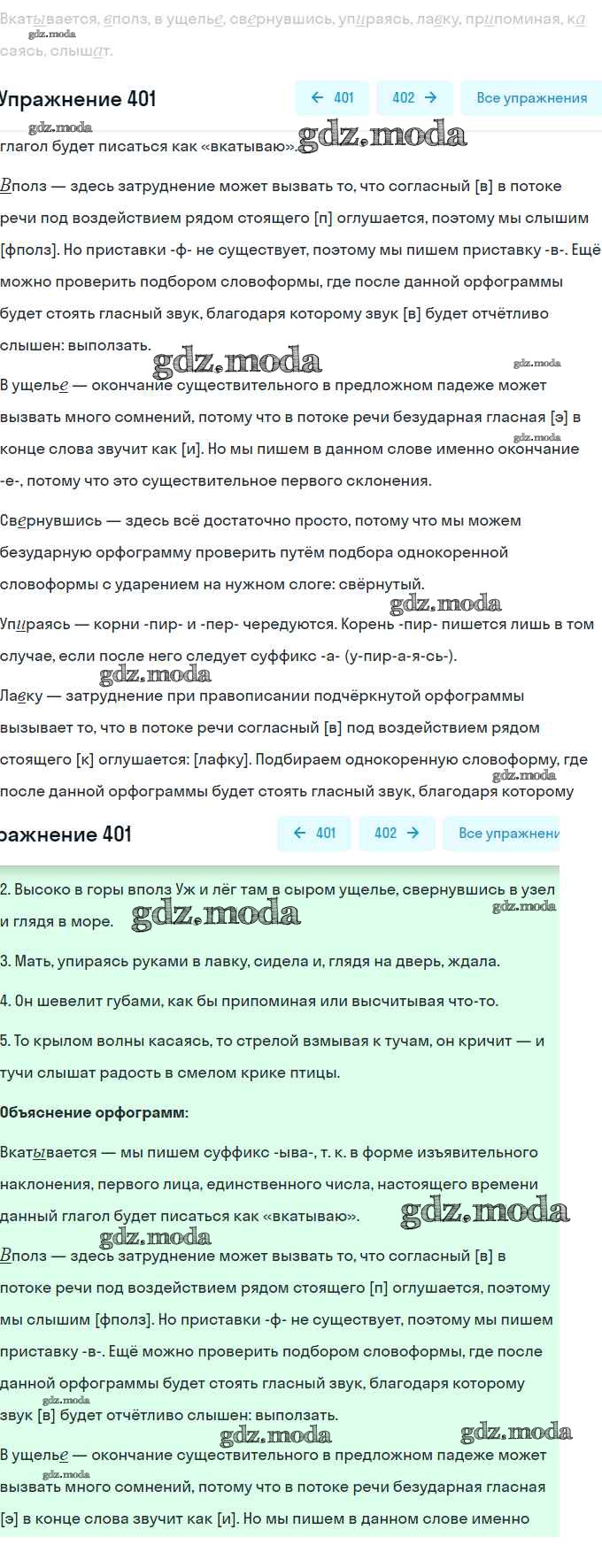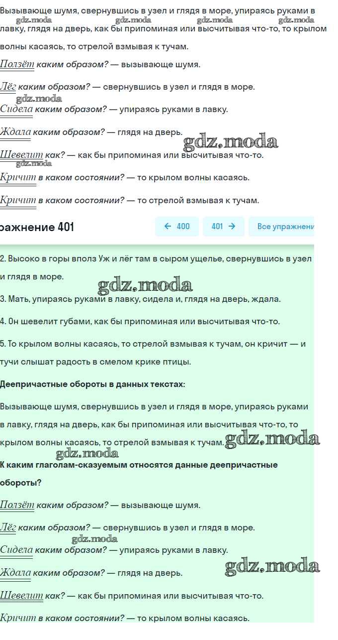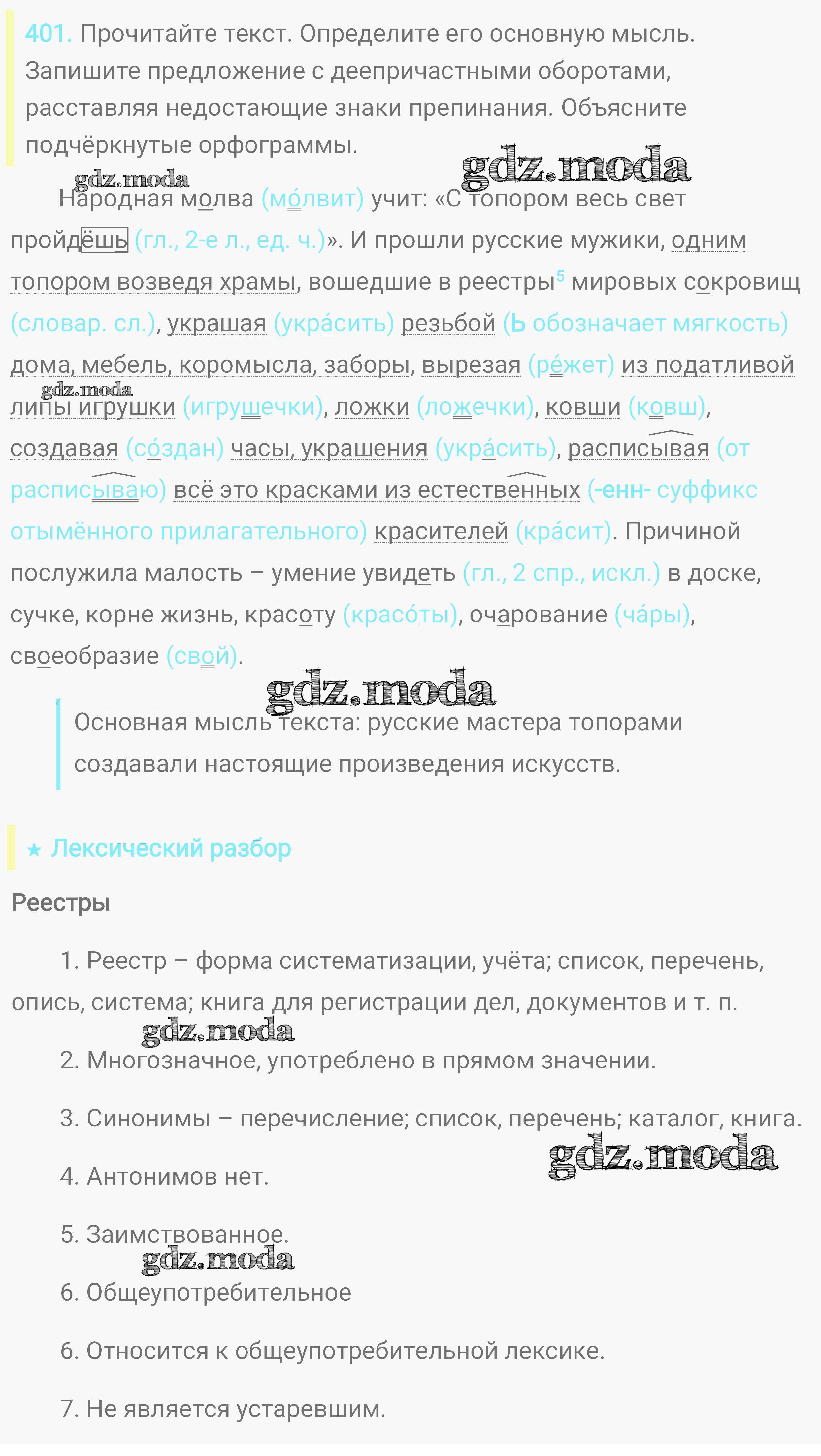ОТВЕТ на задание № 401 Практика по Русскому языку 8 класс Пичугов Вертикаль