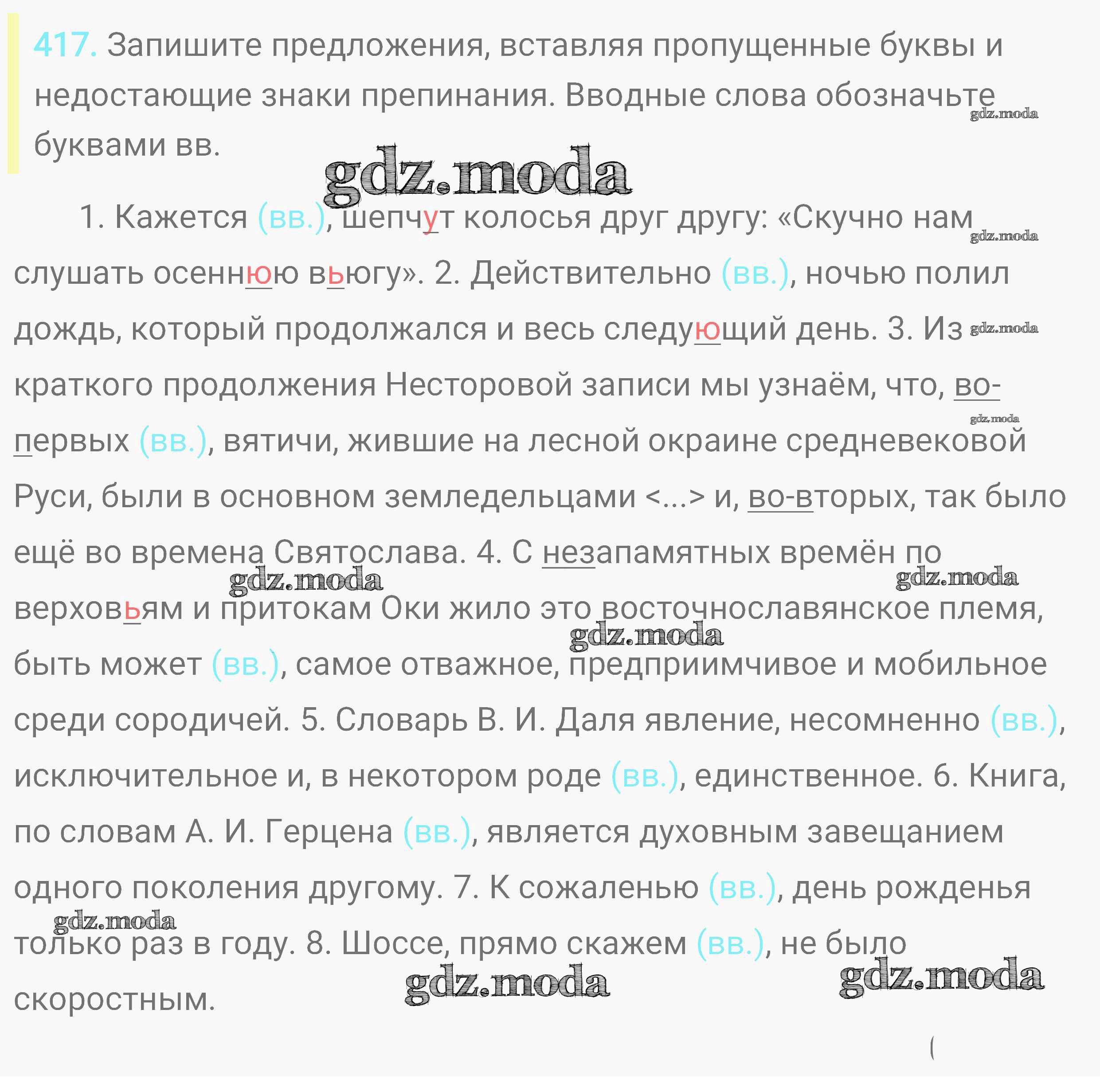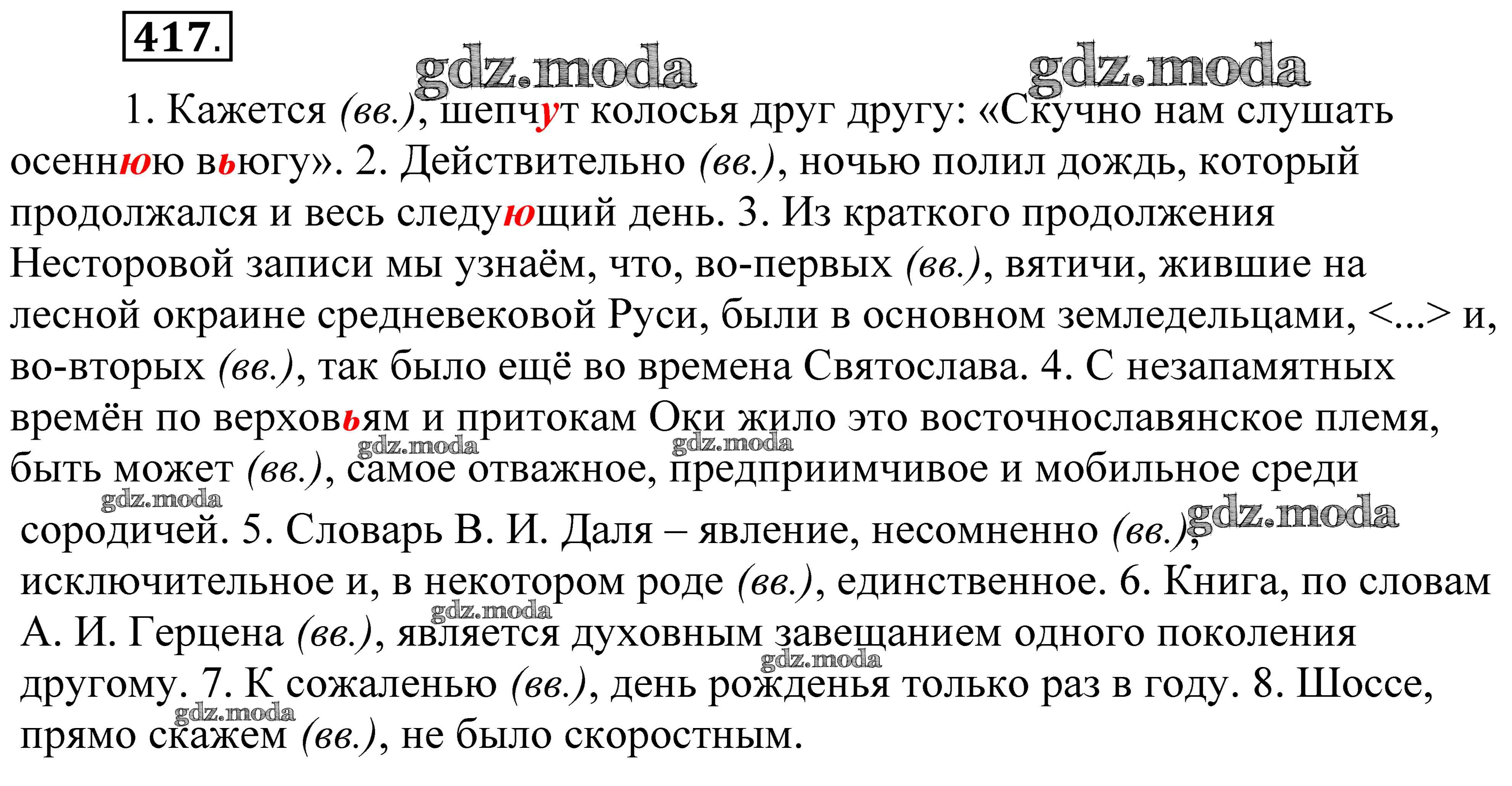 ОТВЕТ на задание № 417 Практика по Русскому языку 8 класс Пичугов Вертикаль