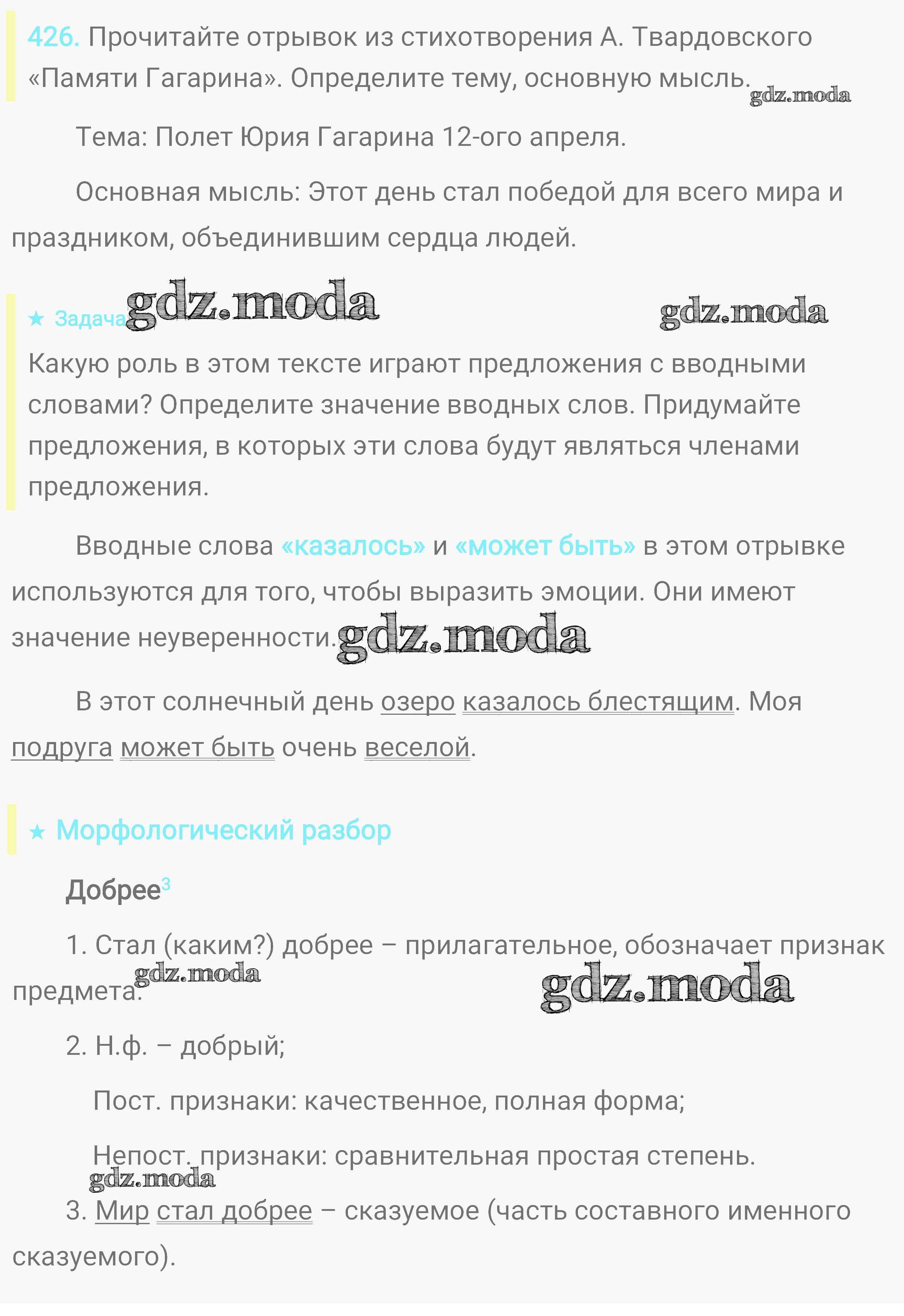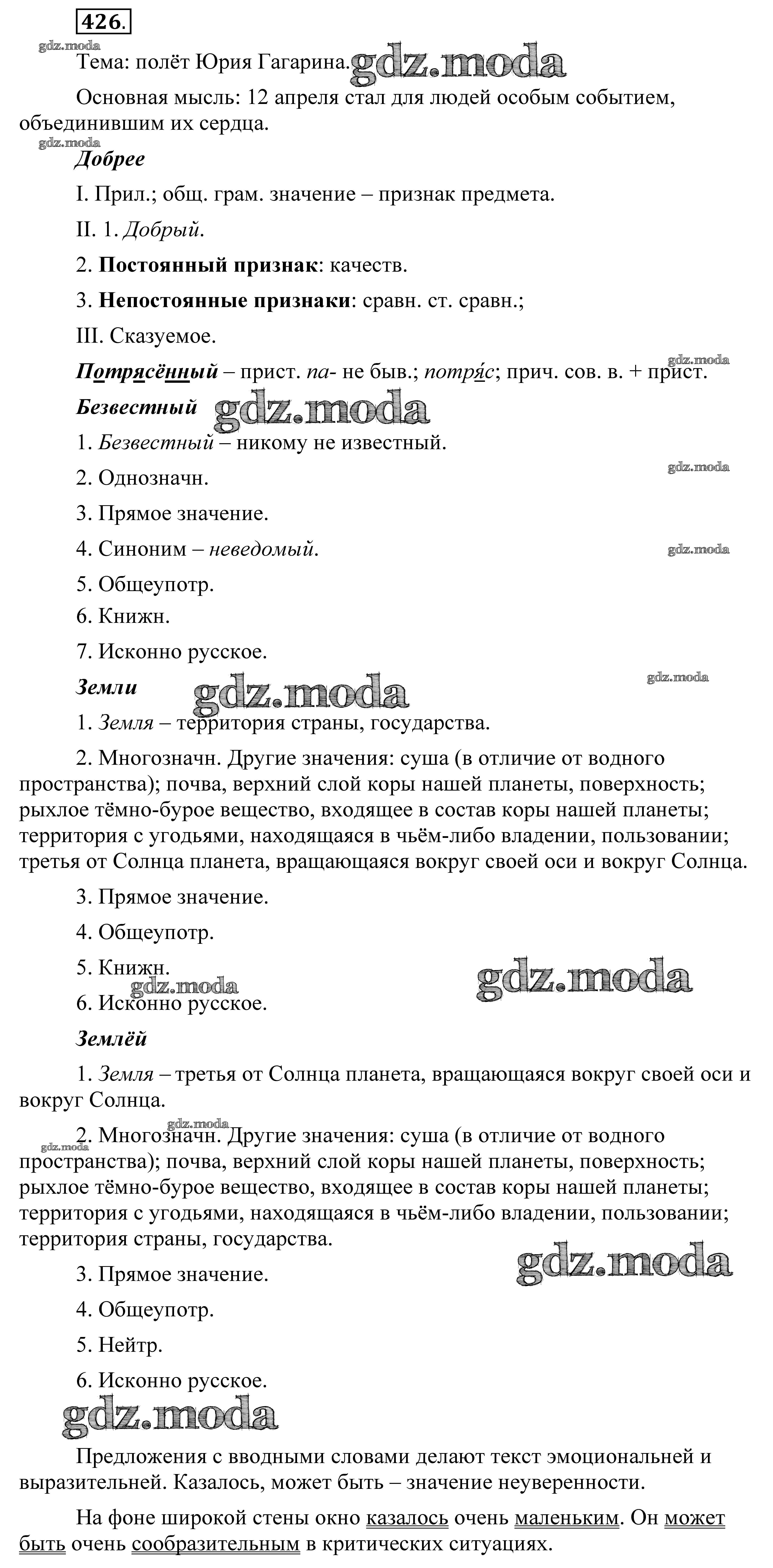 ОТВЕТ на задание № 426 Практика по Русскому языку 8 класс Пичугов Вертикаль