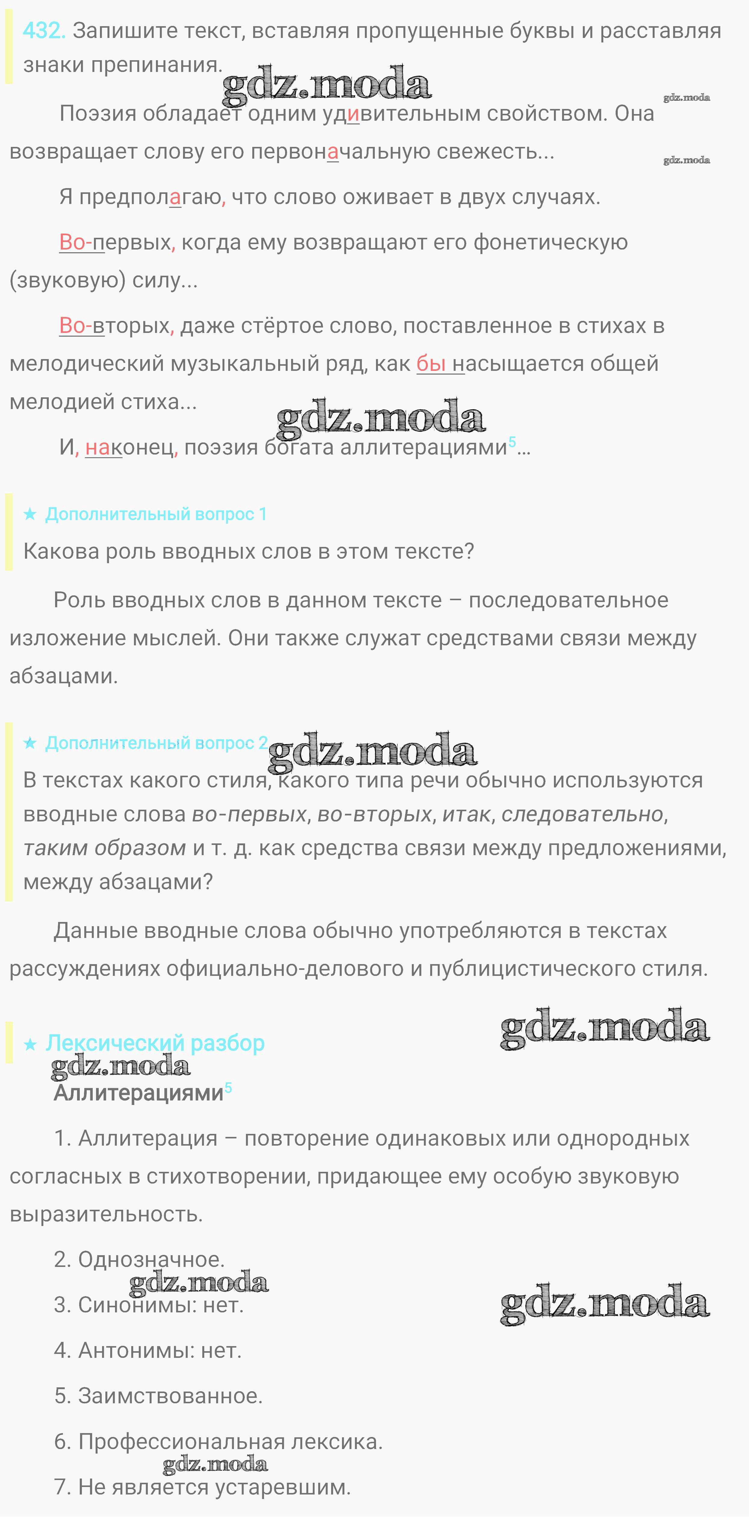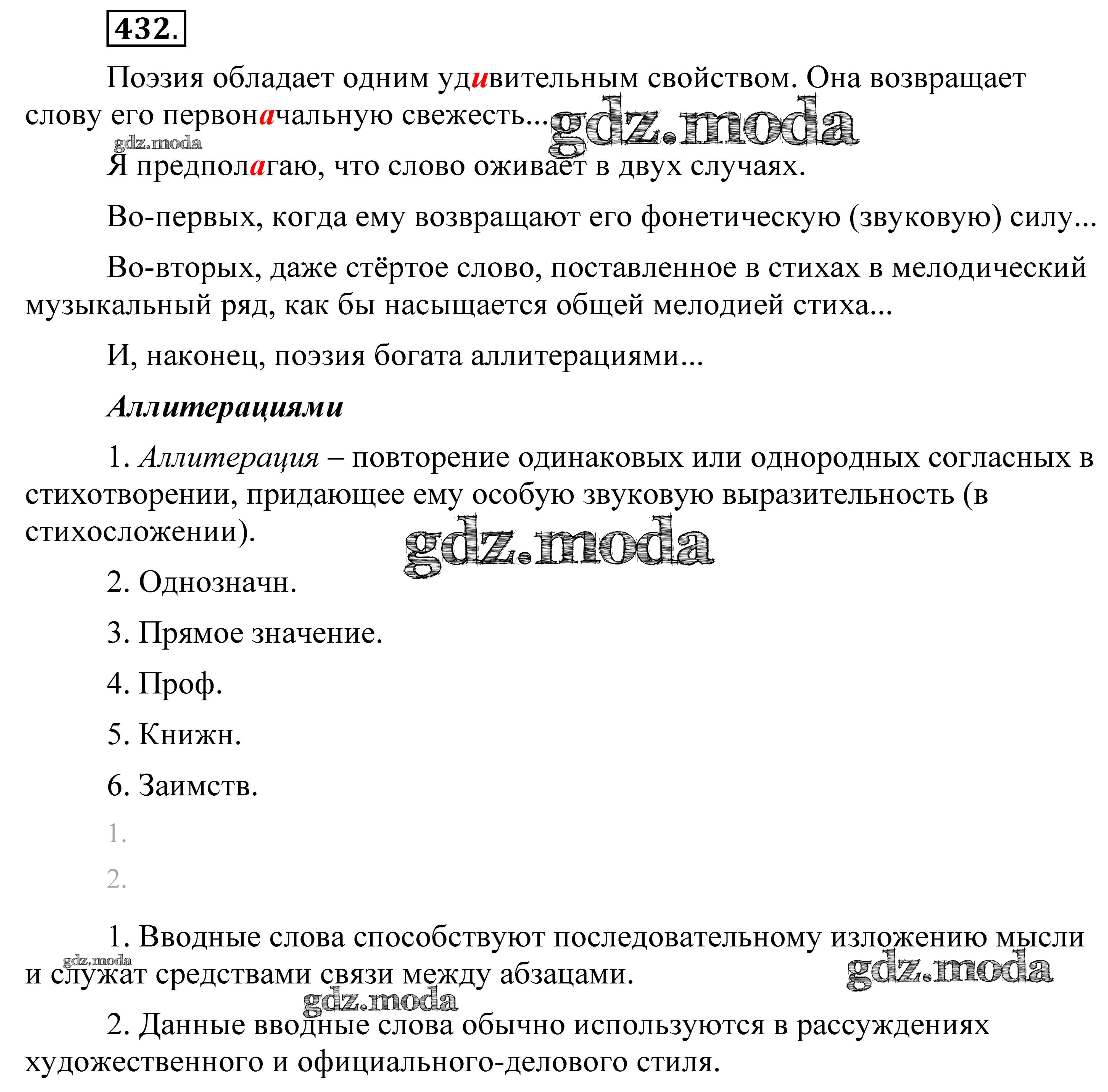ОТВЕТ на задание № 432 Практика по Русскому языку 8 класс Пичугов Вертикаль