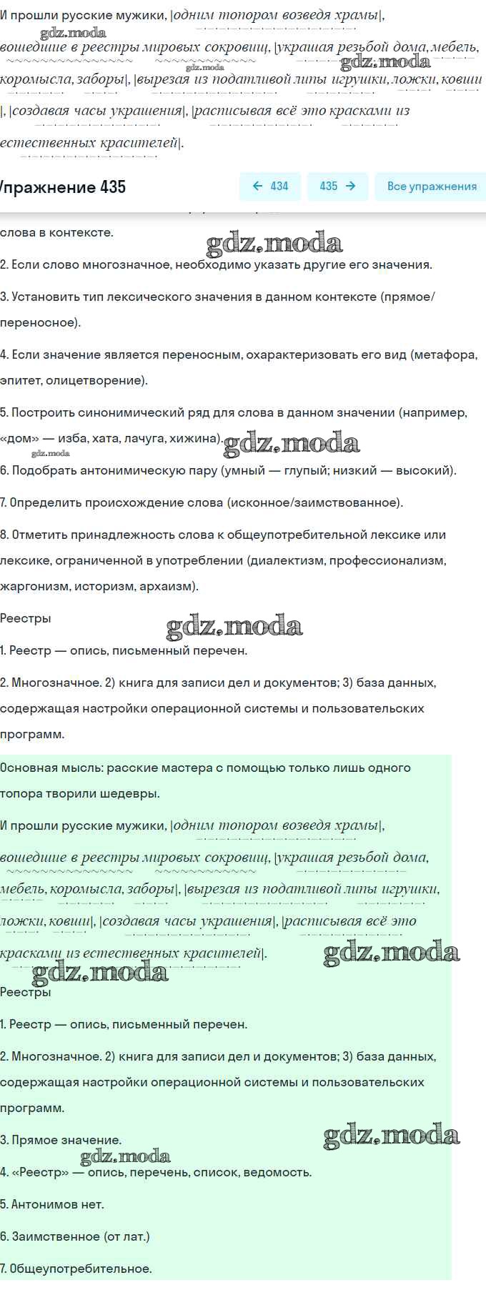 ОТВЕТ на задание № 435 Практика по Русскому языку 8 класс Пичугов Вертикаль