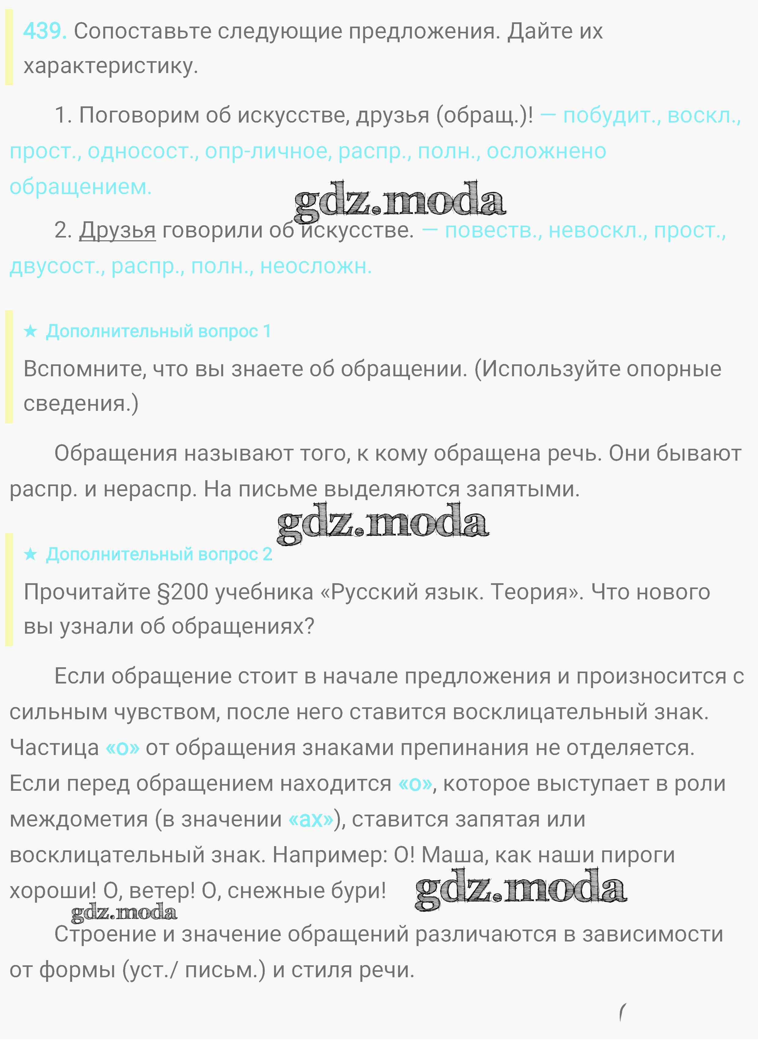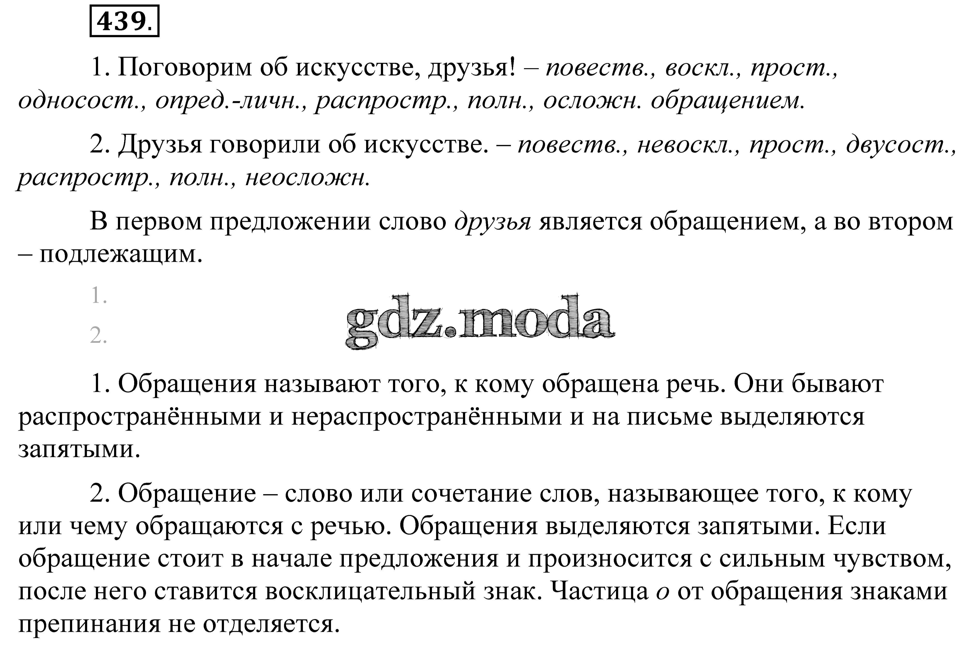ОТВЕТ на задание № 439 Практика по Русскому языку 8 класс Пичугов Вертикаль