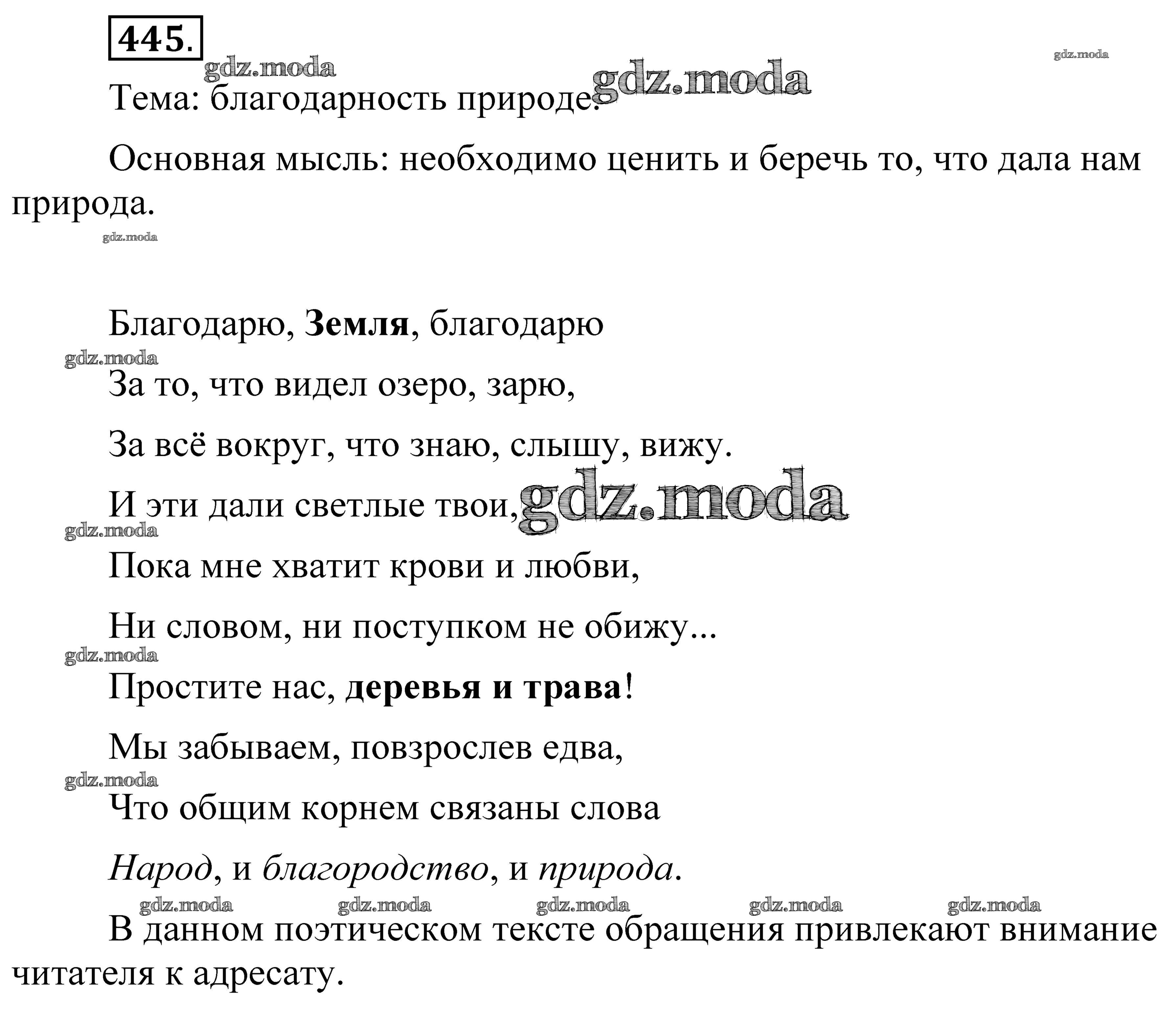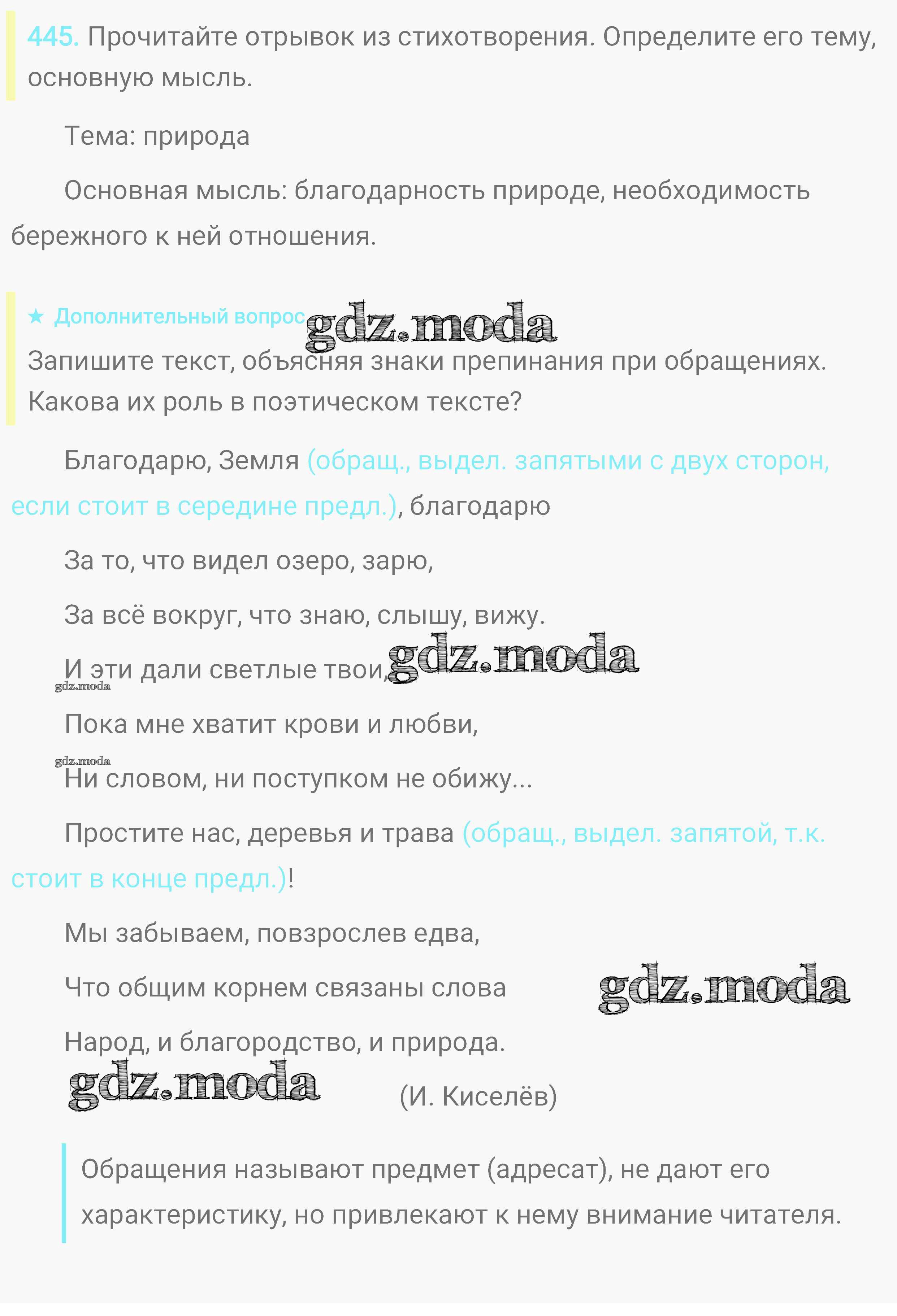 ОТВЕТ на задание № 445 Практика по Русскому языку 8 класс Пичугов Вертикаль
