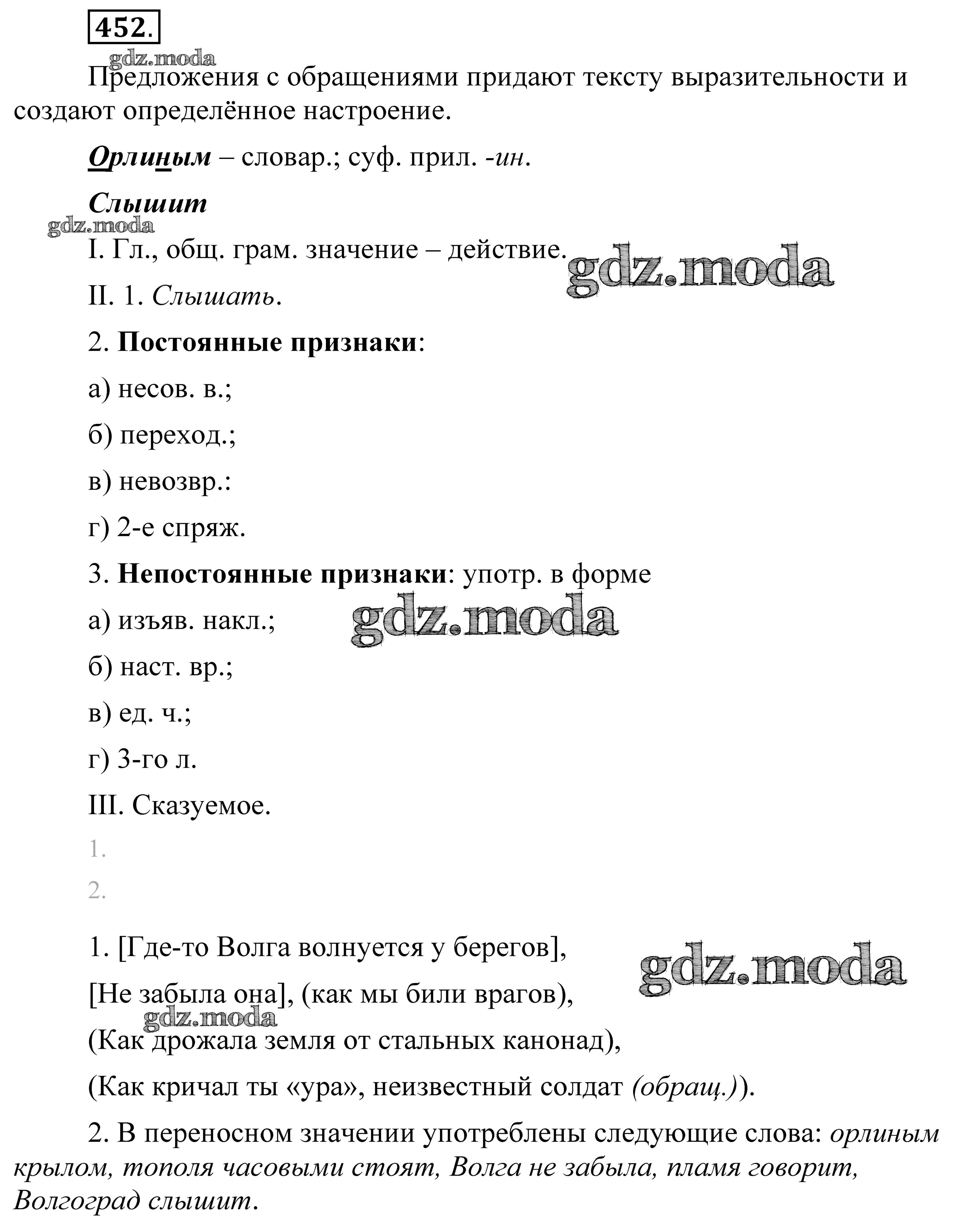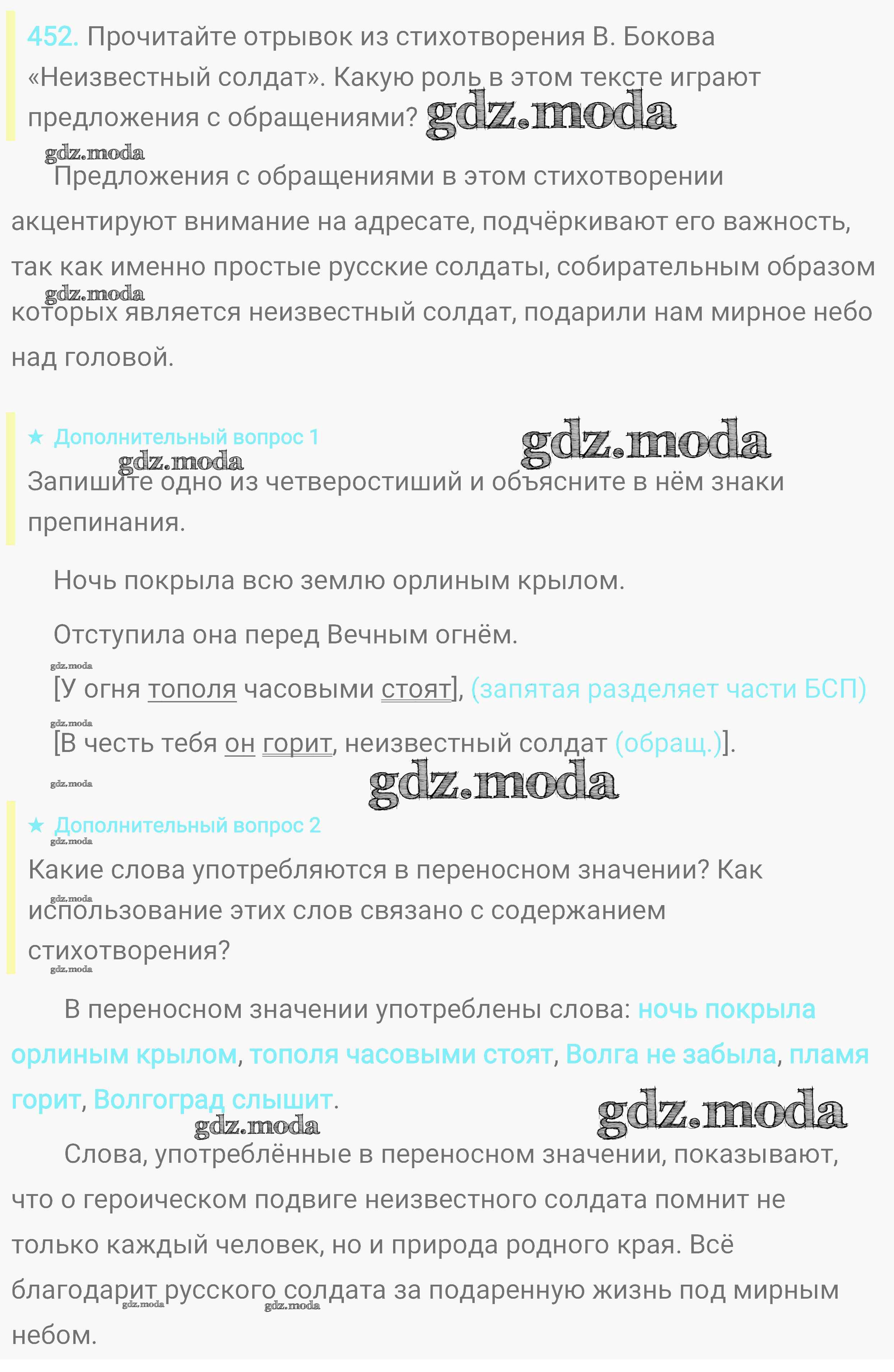 ОТВЕТ на задание № 452 Практика по Русскому языку 8 класс Пичугов Вертикаль