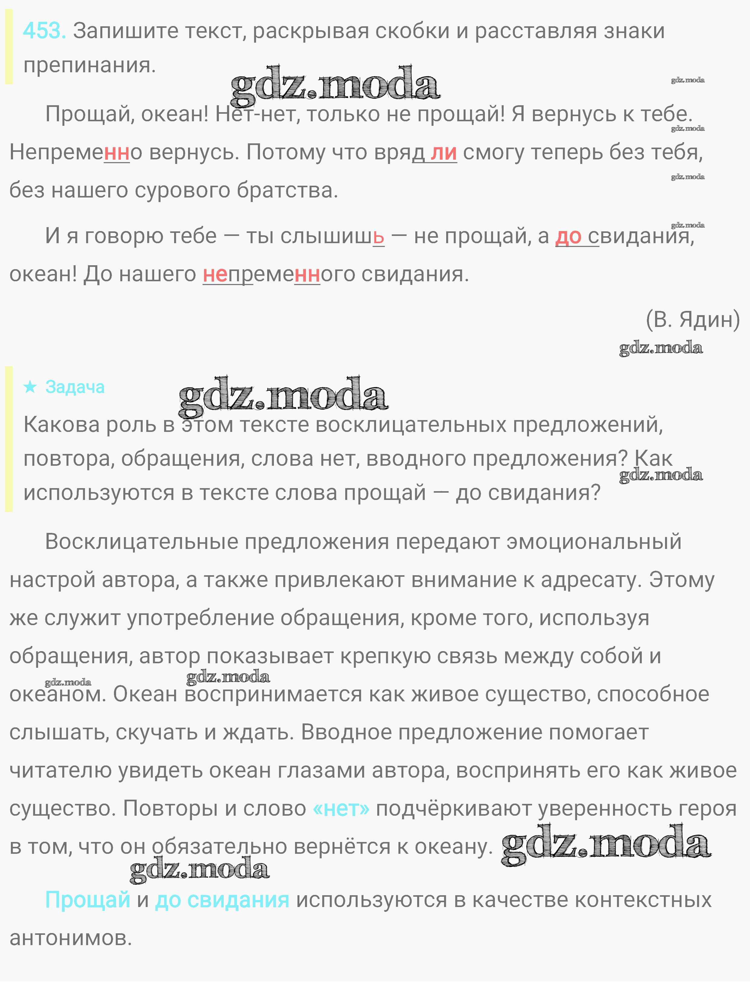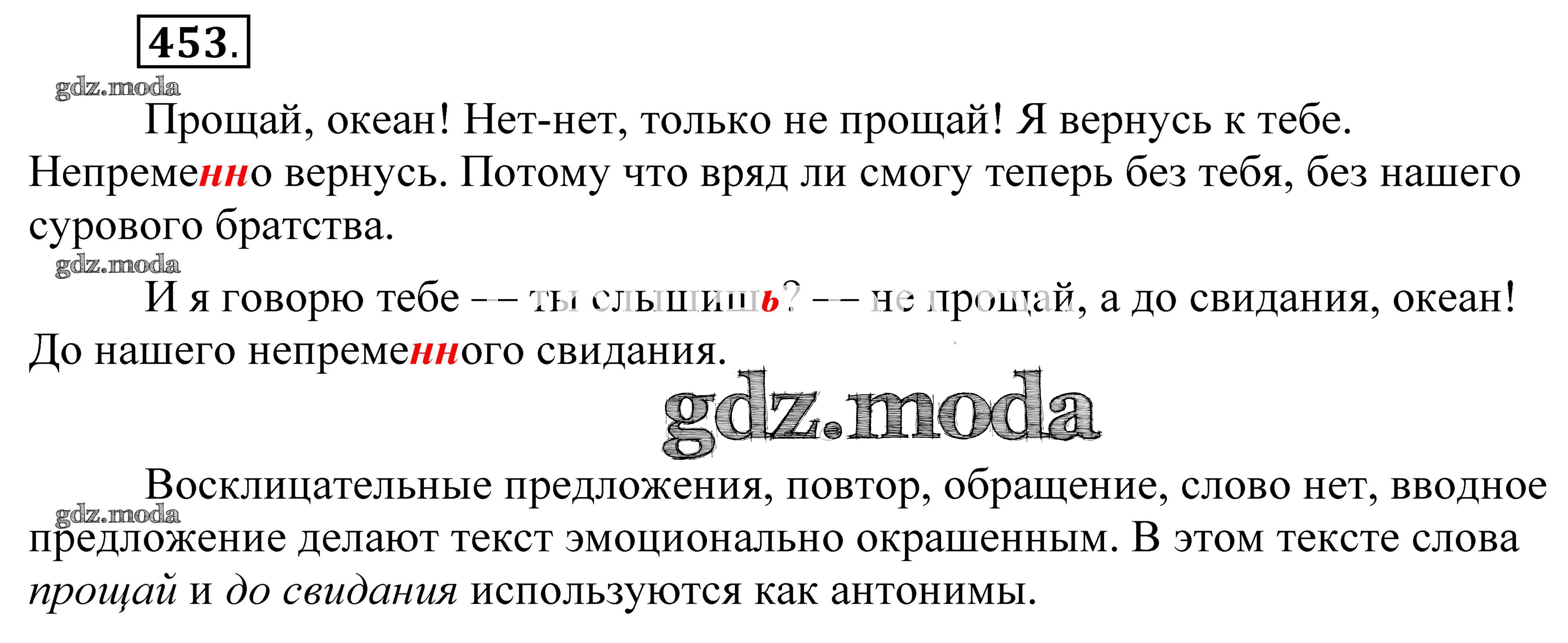 ОТВЕТ на задание № 453 Практика по Русскому языку 8 класс Пичугов Вертикаль