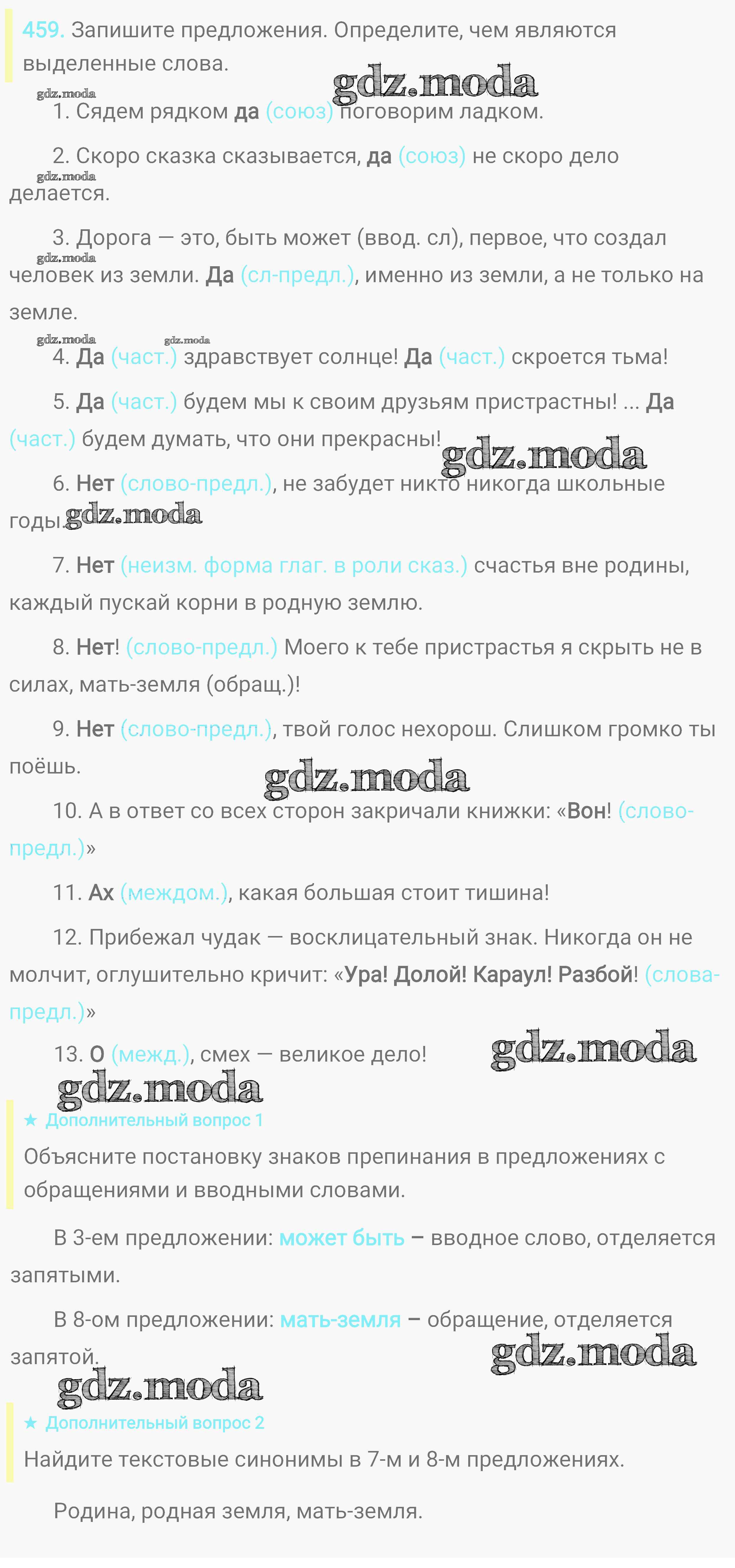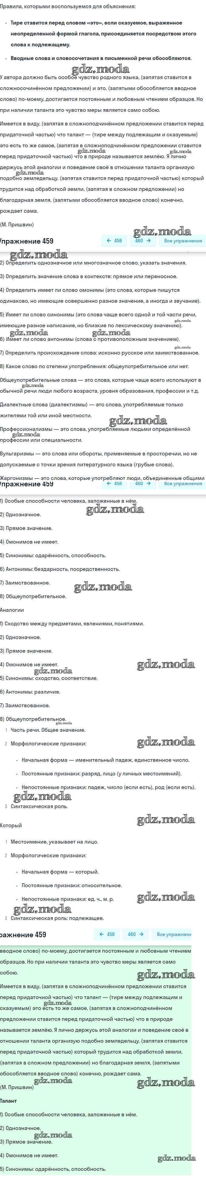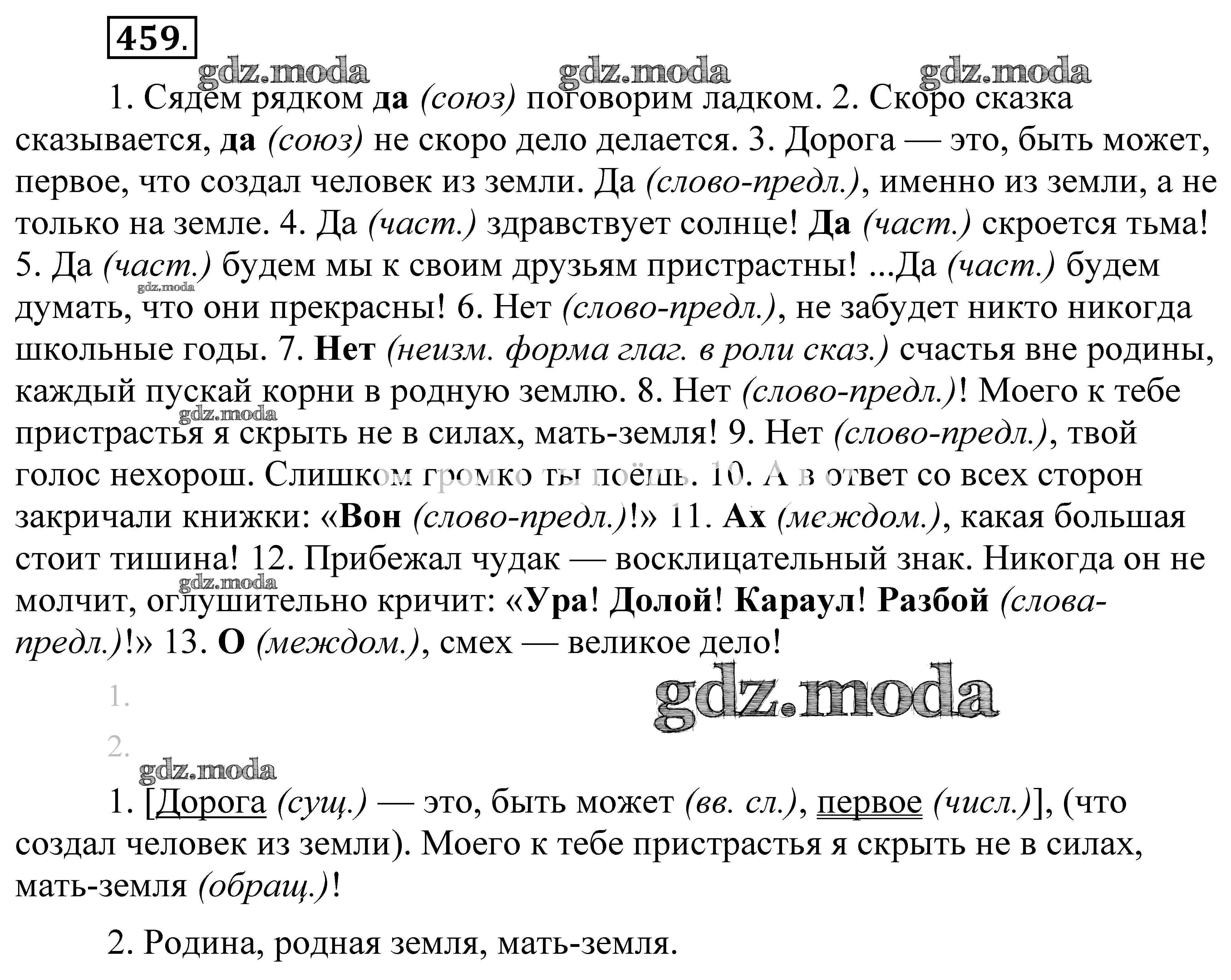 ОТВЕТ на задание № 459 Практика по Русскому языку 8 класс Пичугов Вертикаль