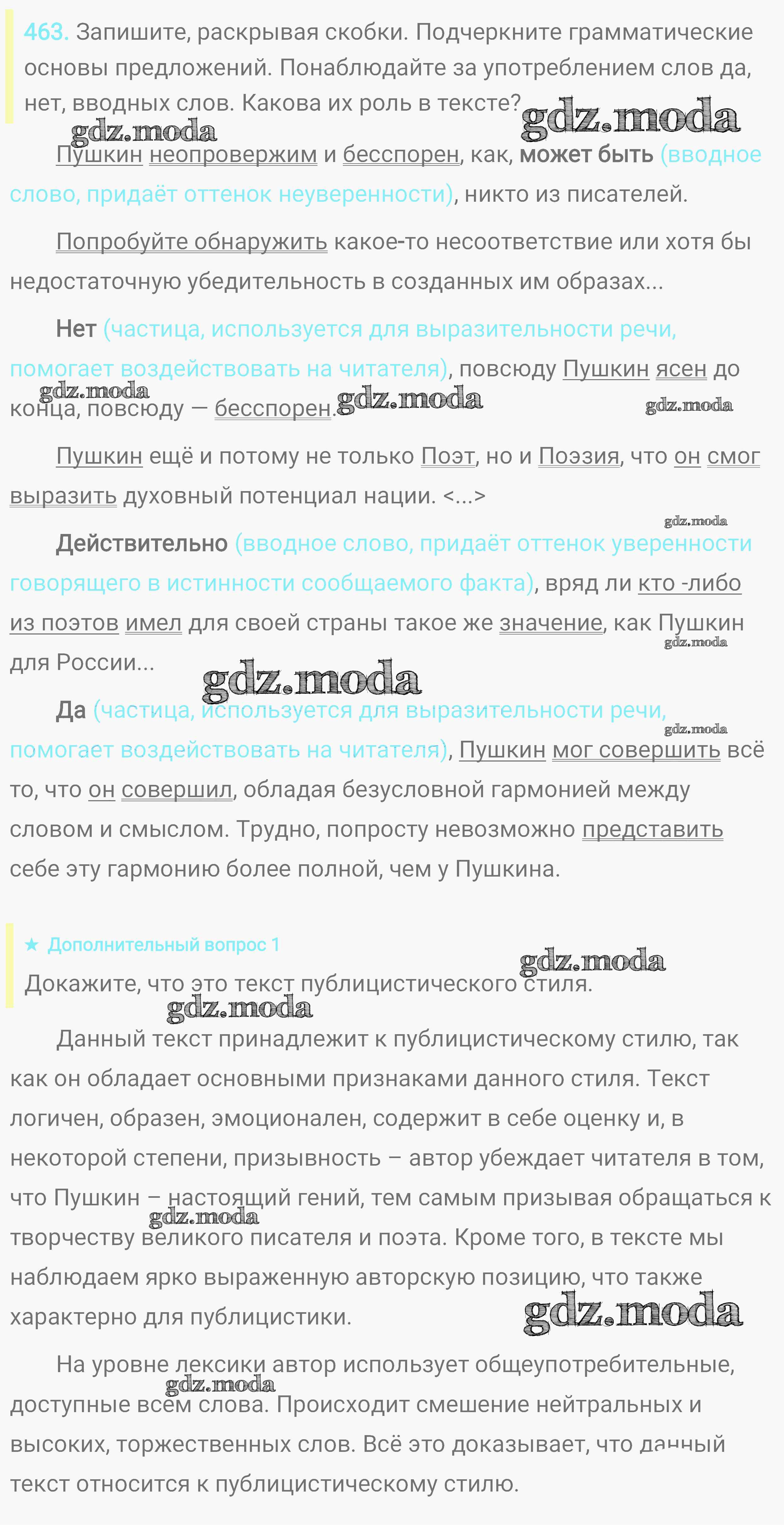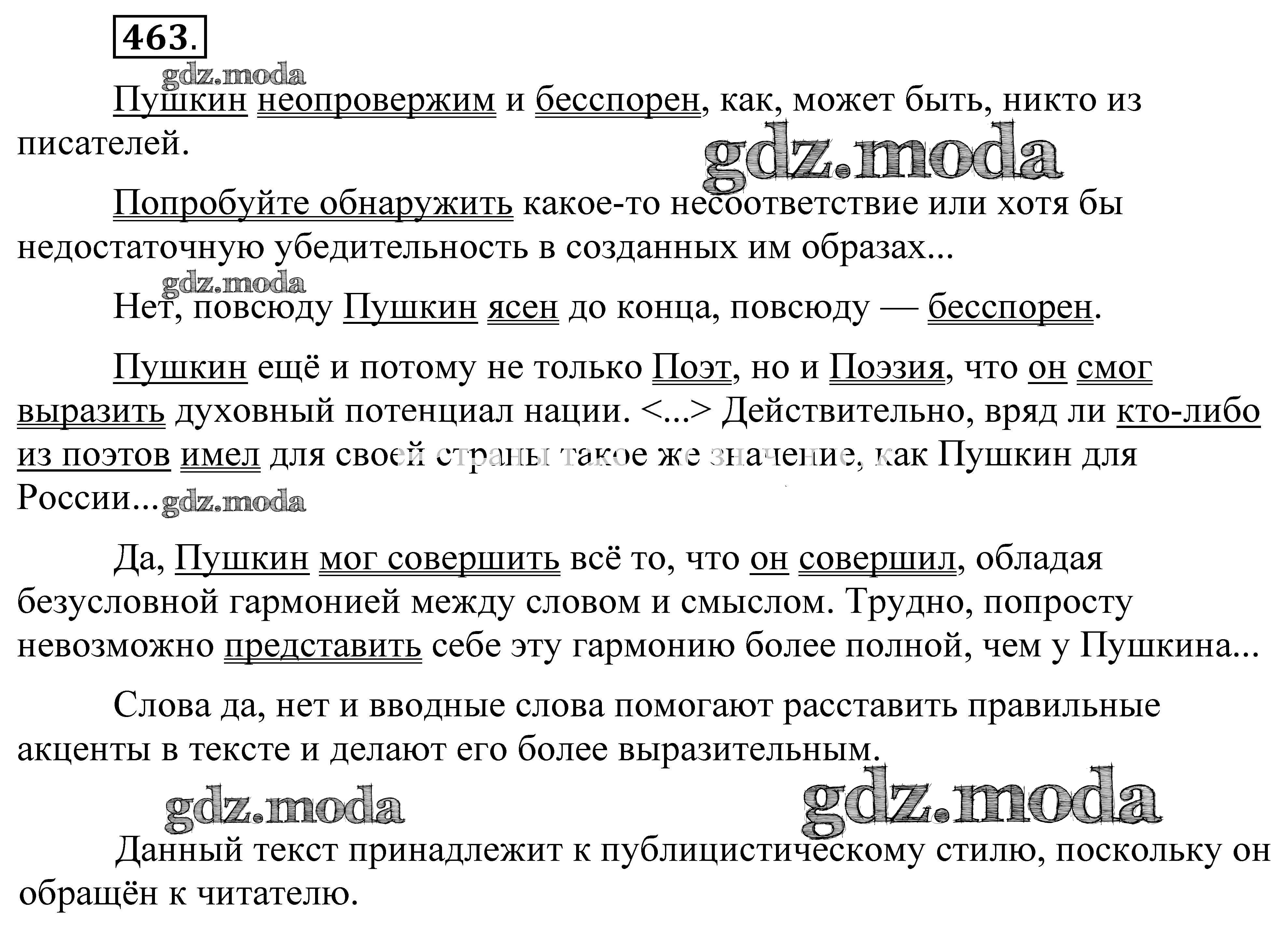 ОТВЕТ на задание № 463 Практика по Русскому языку 8 класс Пичугов Вертикаль