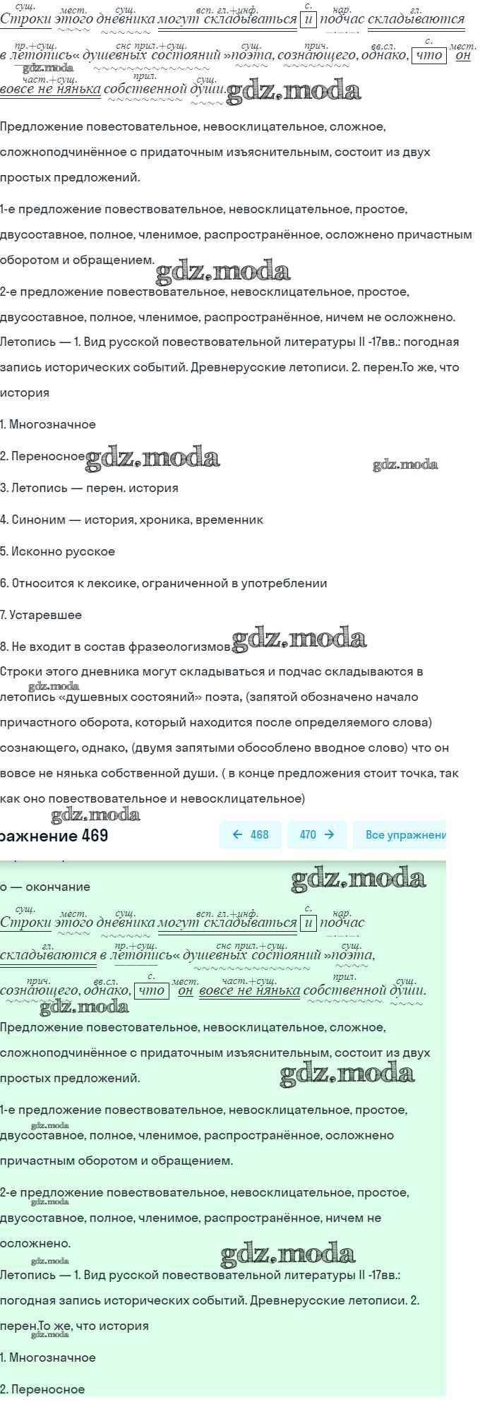 ОТВЕТ на задание № 469 Практика по Русскому языку 8 класс Пичугов Вертикаль