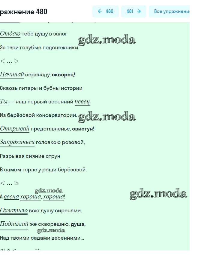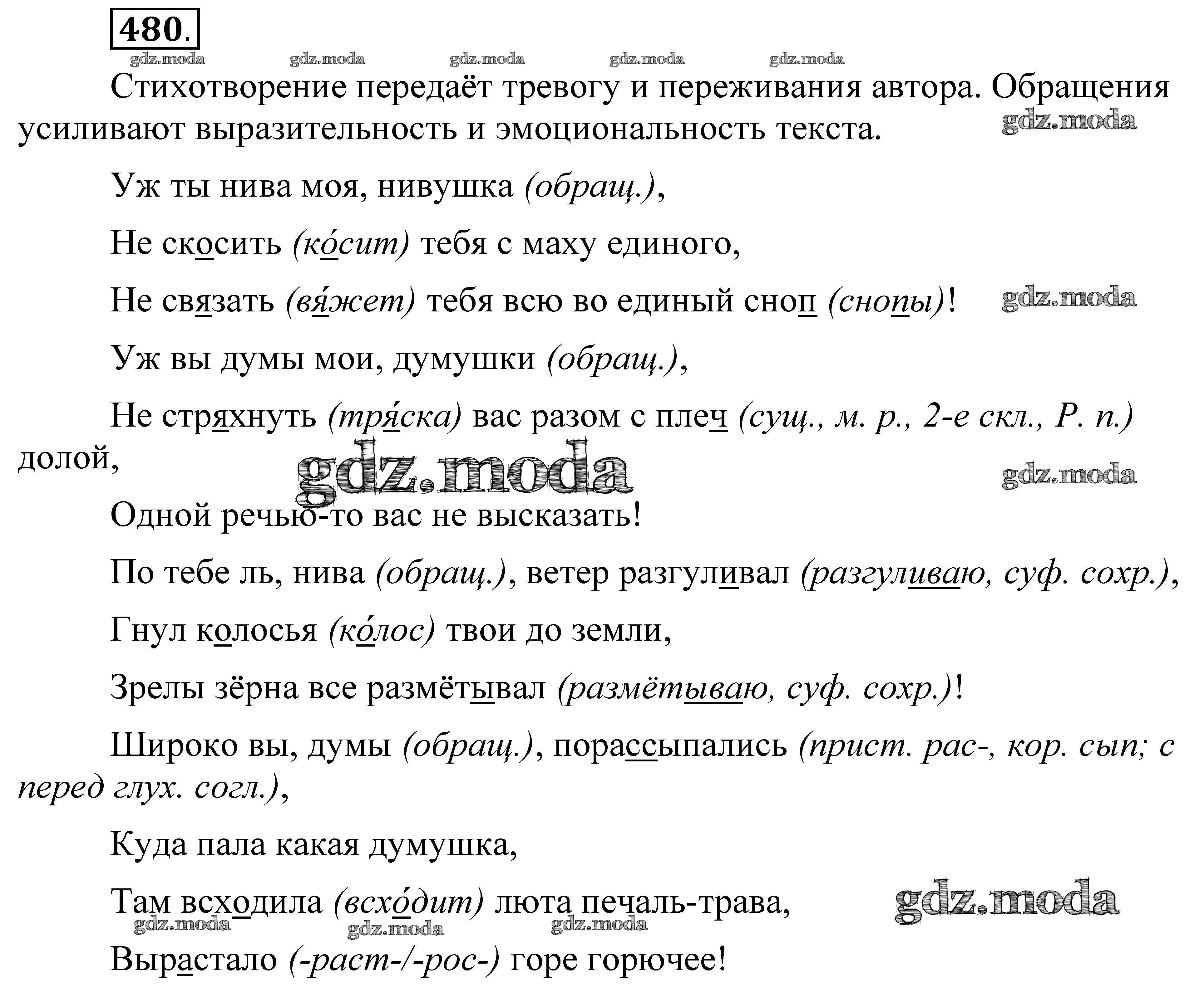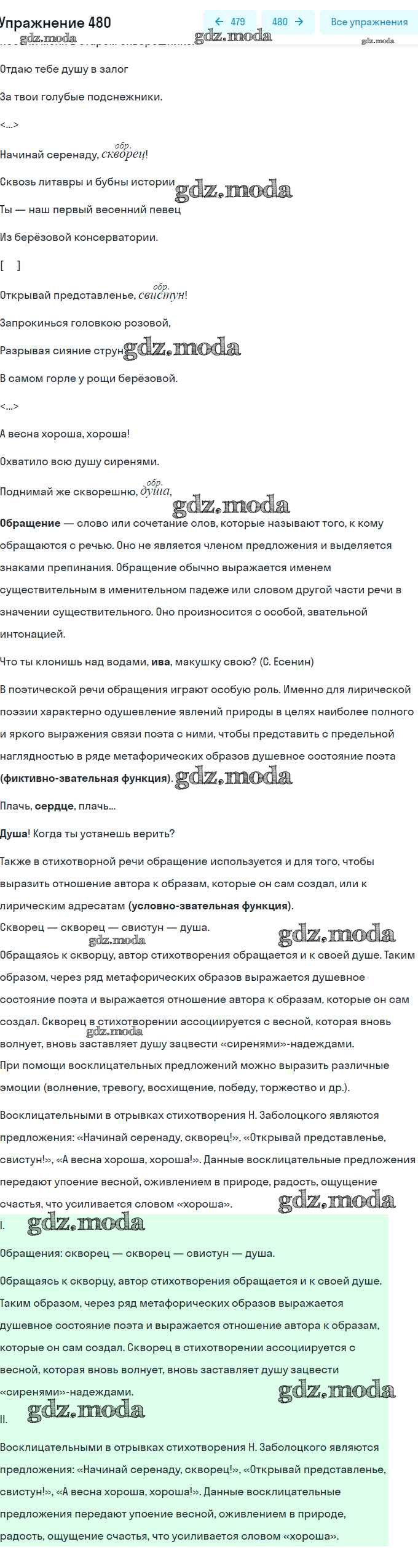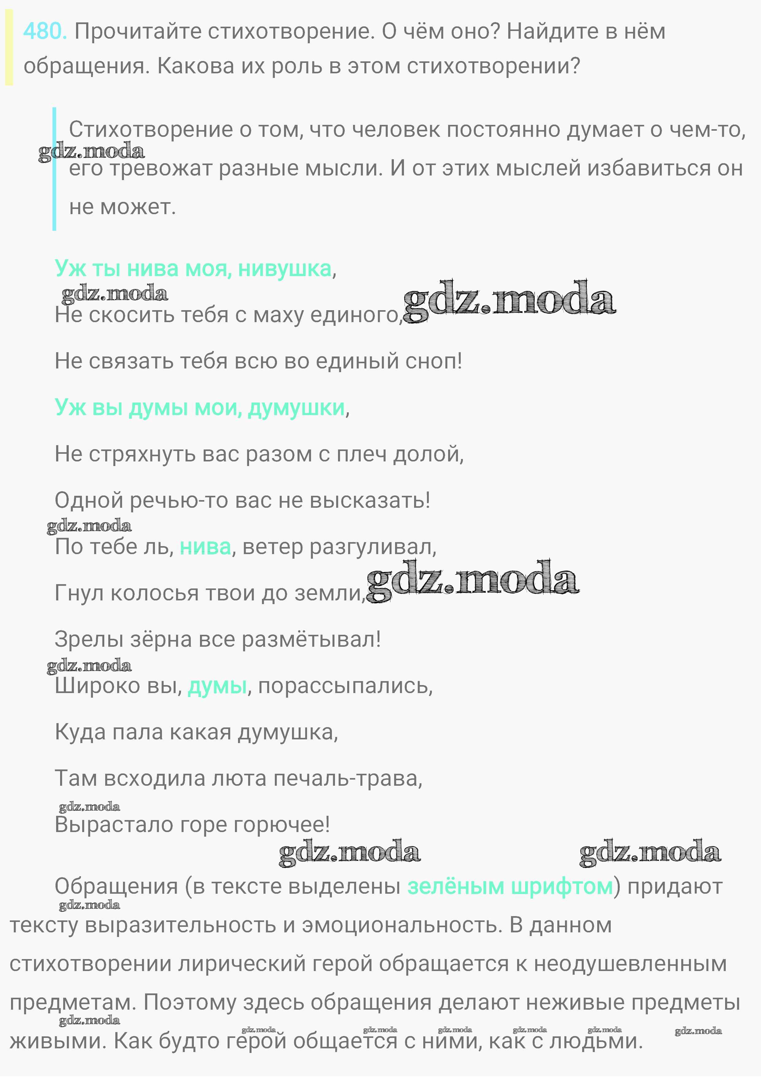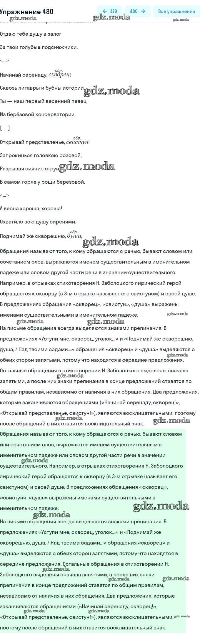 ОТВЕТ на задание № 480 Практика по Русскому языку 8 класс Пичугов Вертикаль
