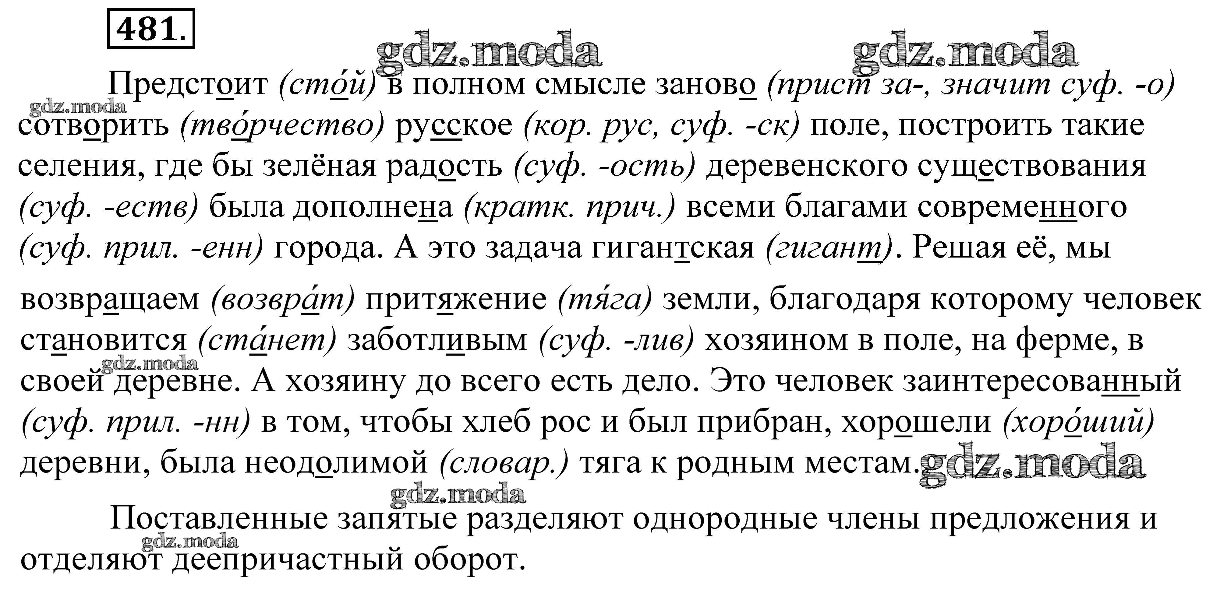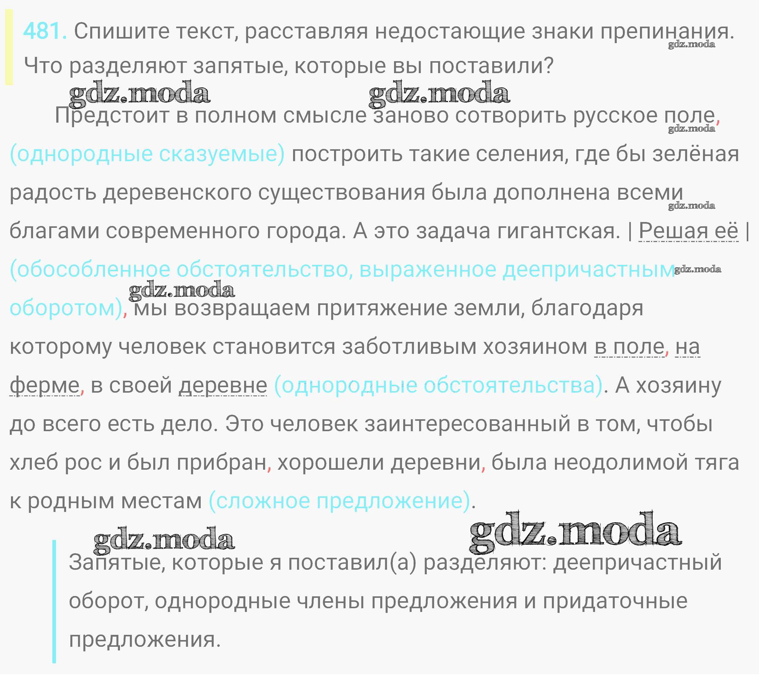 ОТВЕТ на задание № 481 Практика по Русскому языку 8 класс Пичугов Вертикаль