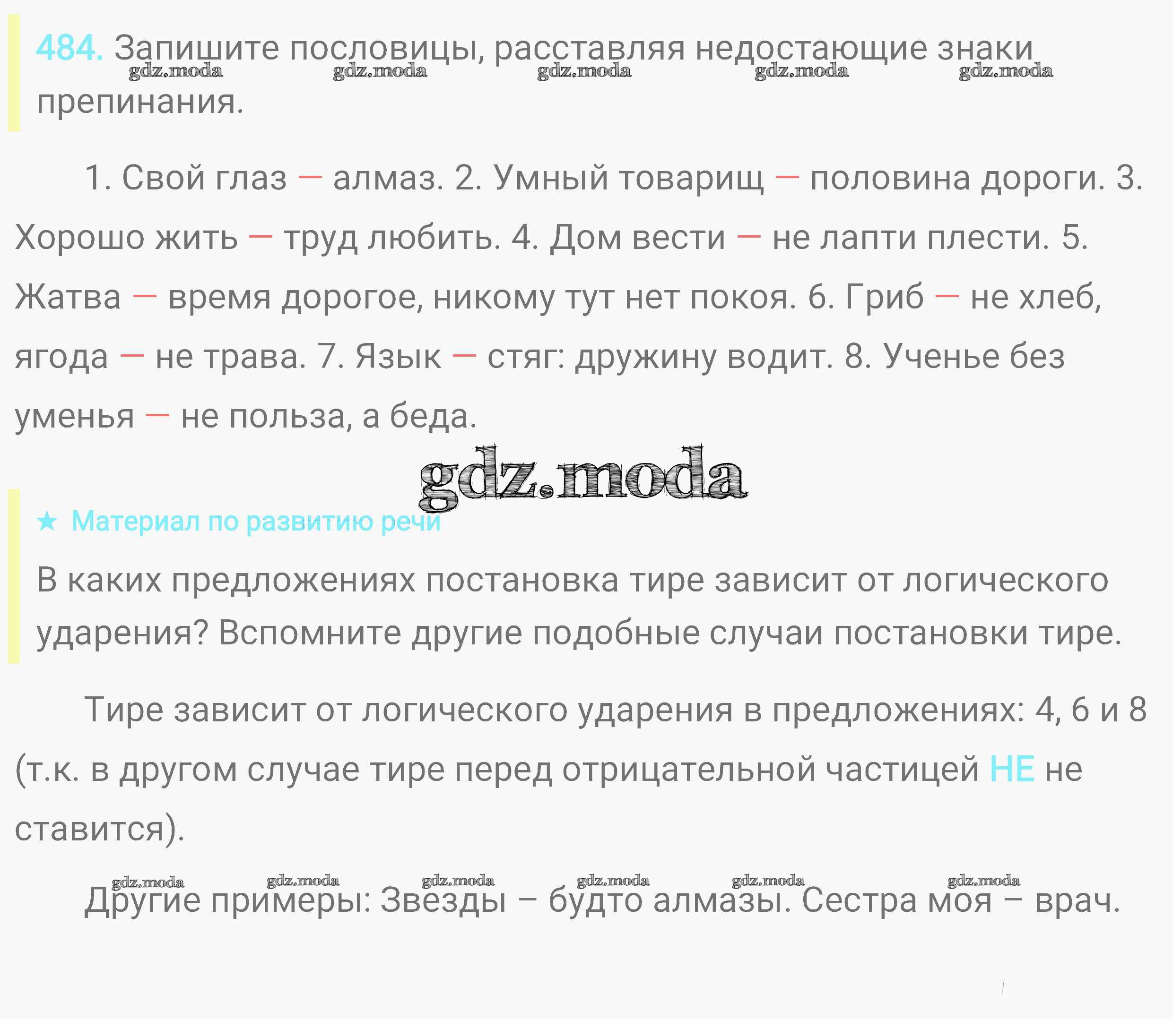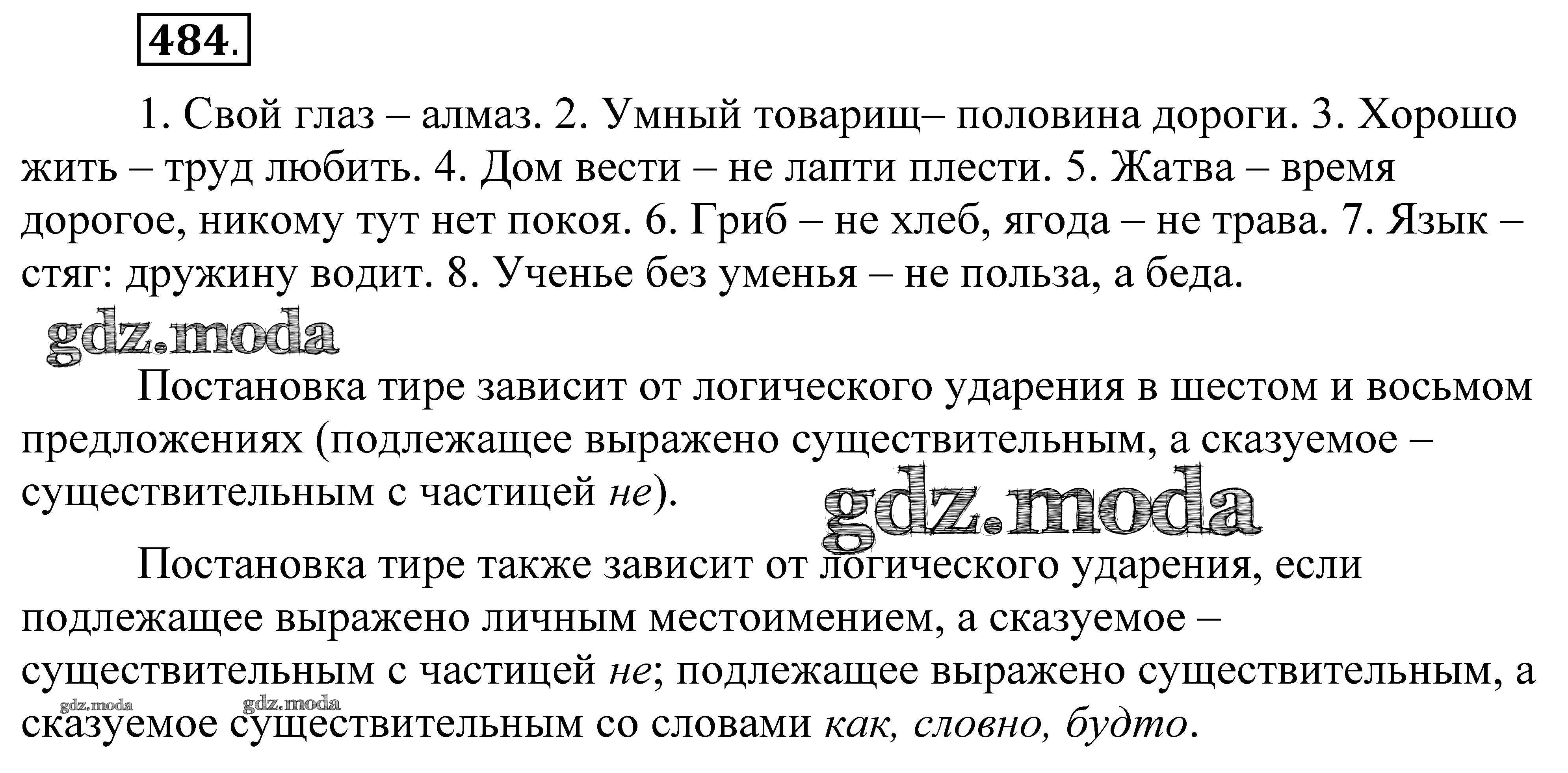 ОТВЕТ на задание № 484 Практика по Русскому языку 8 класс Пичугов Вертикаль