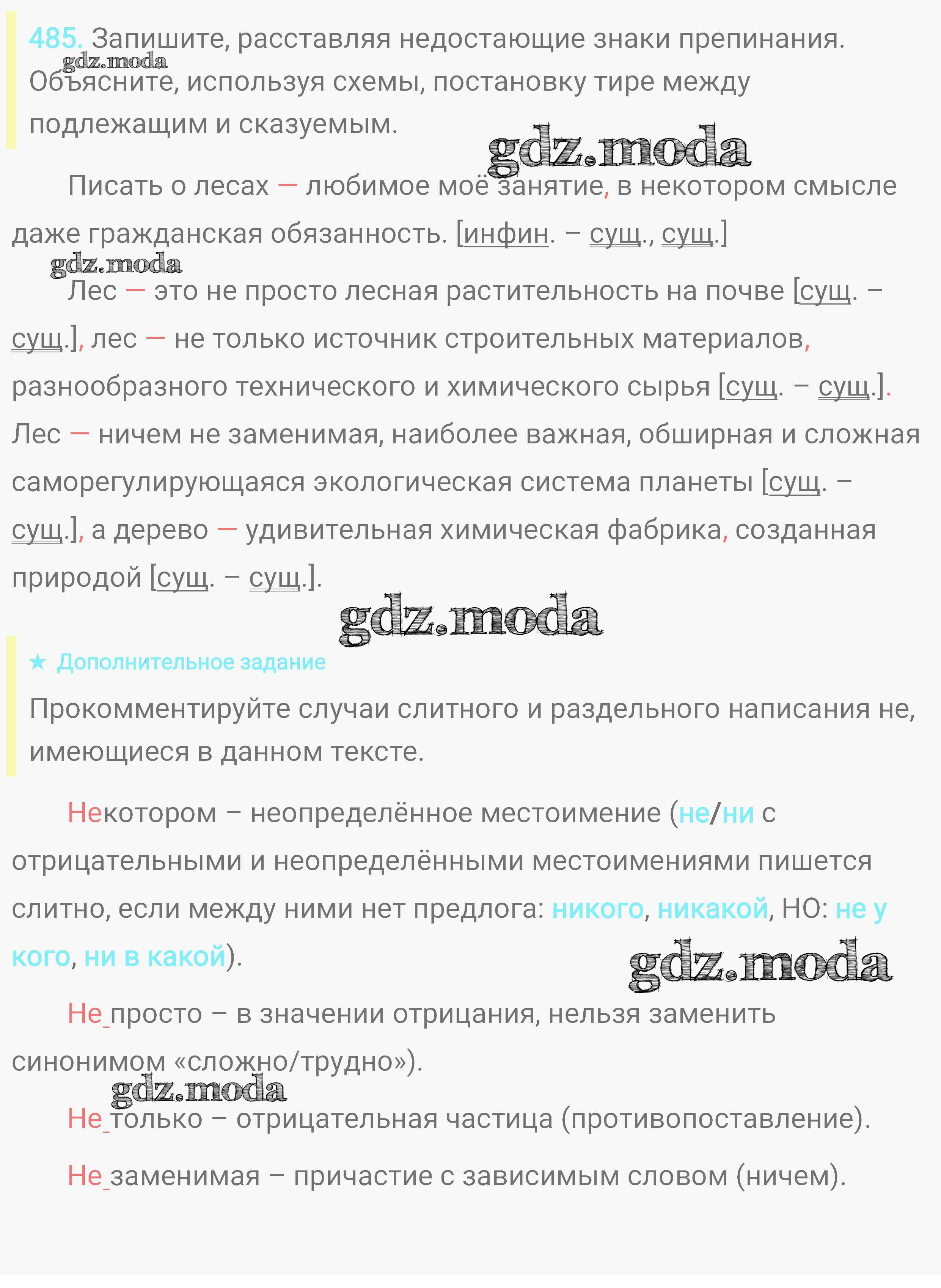 ОТВЕТ на задание № 485 Практика по Русскому языку 8 класс Пичугов Вертикаль