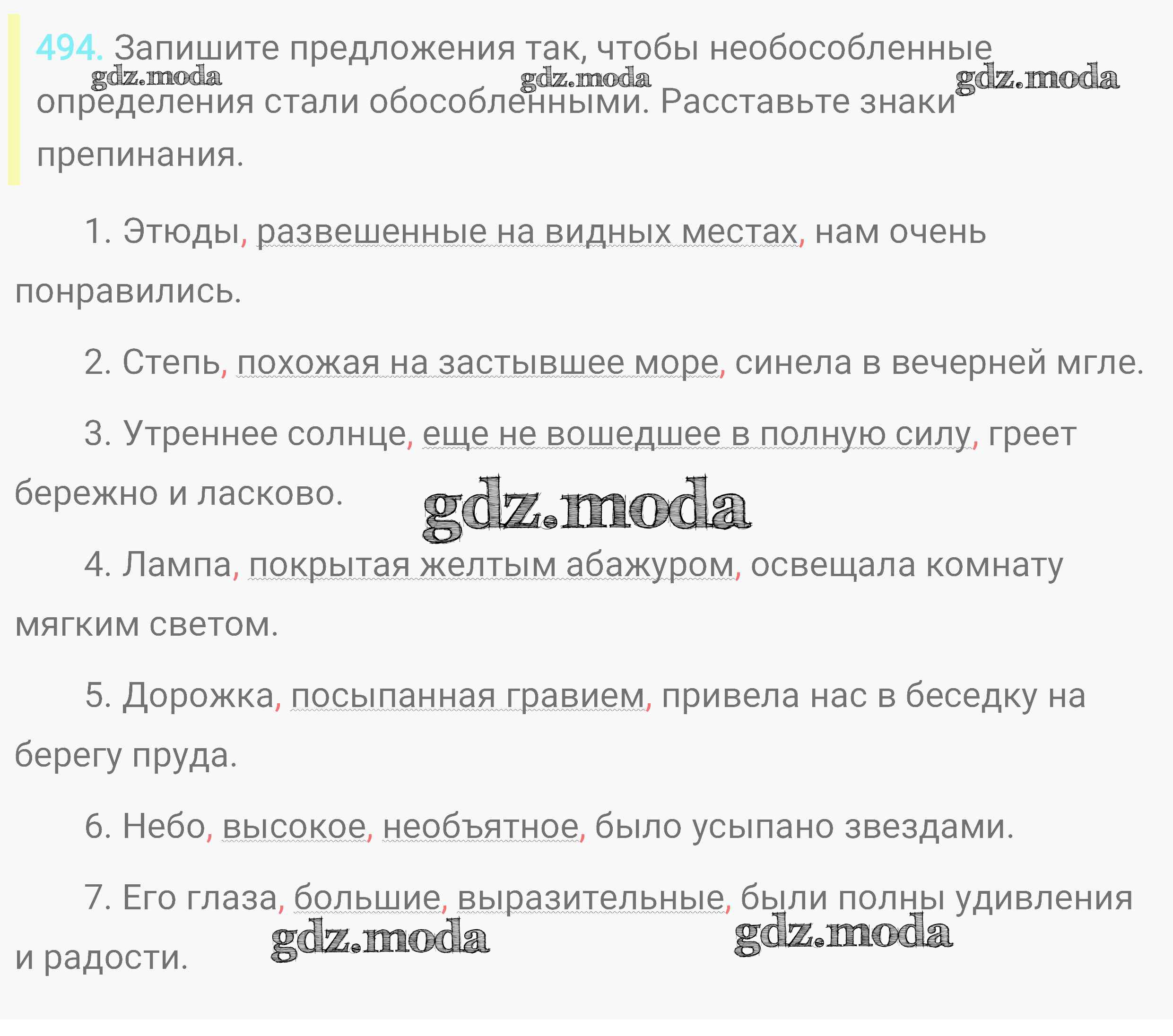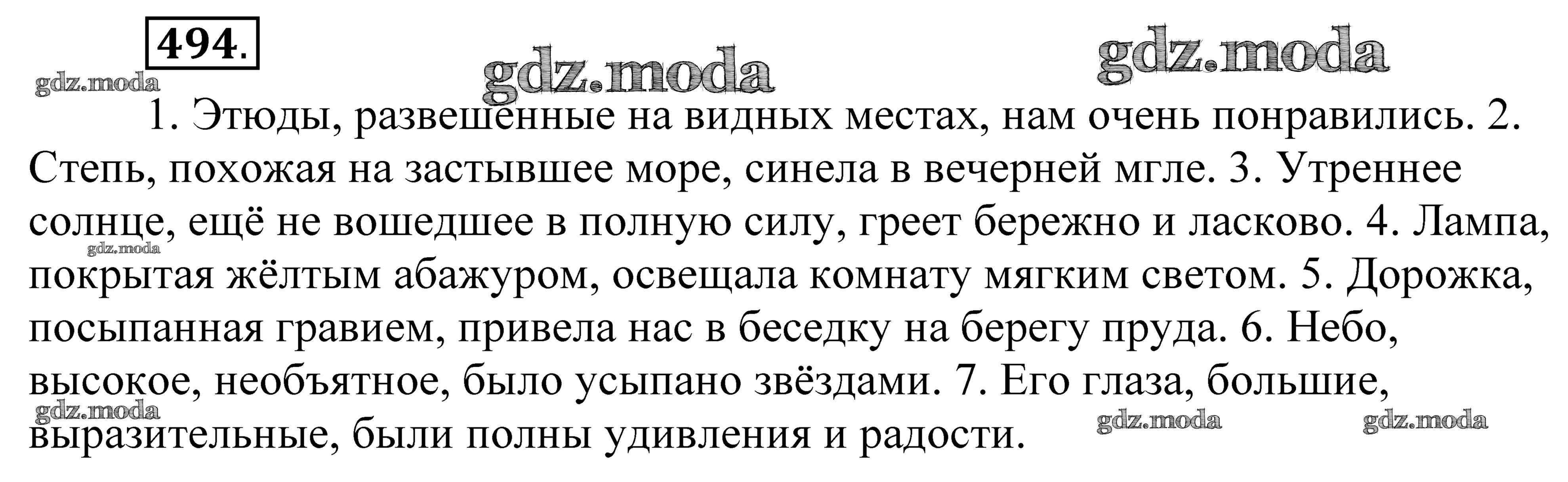 ОТВЕТ на задание № 494 Практика по Русскому языку 8 класс Пичугов Вертикаль