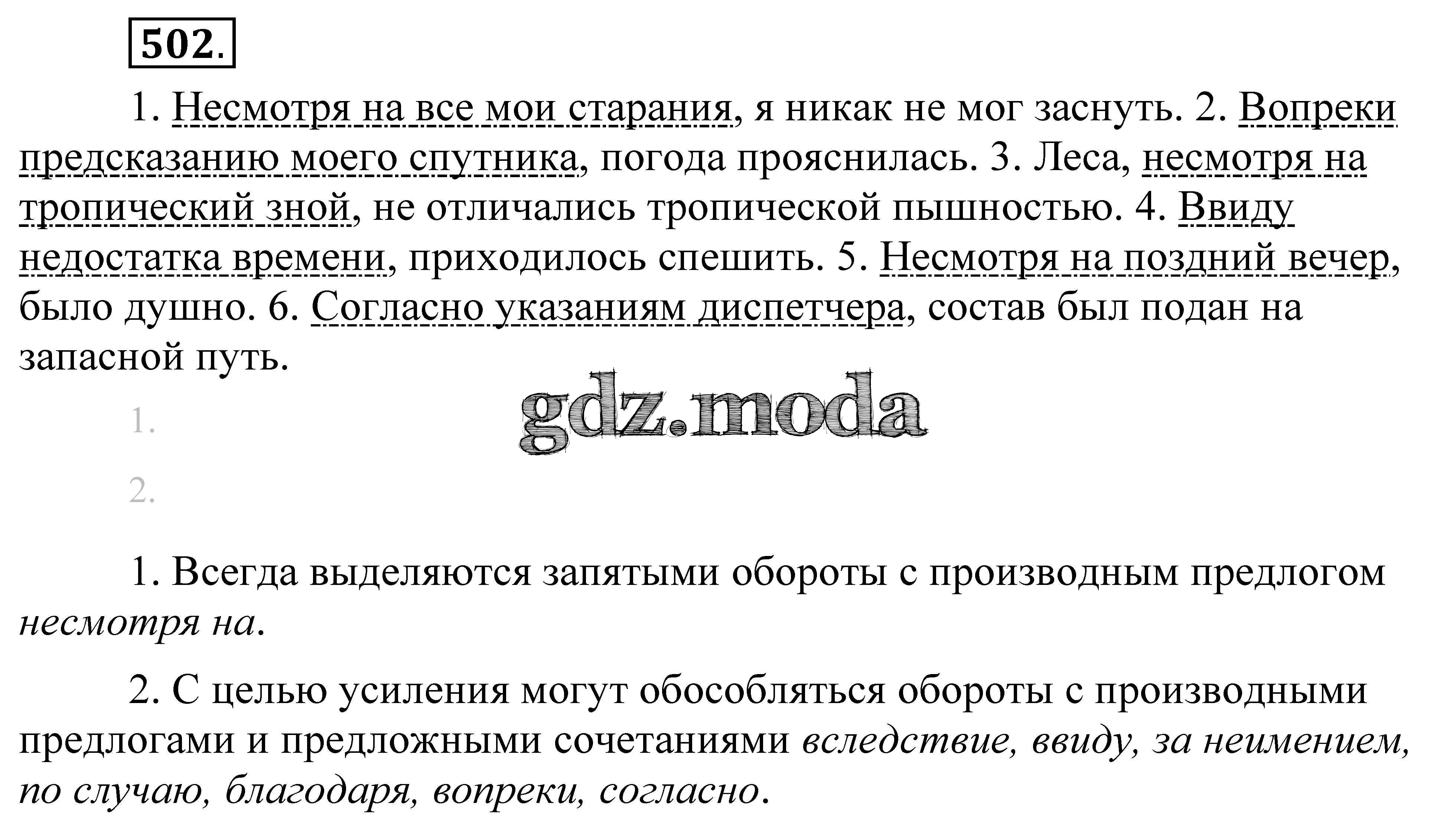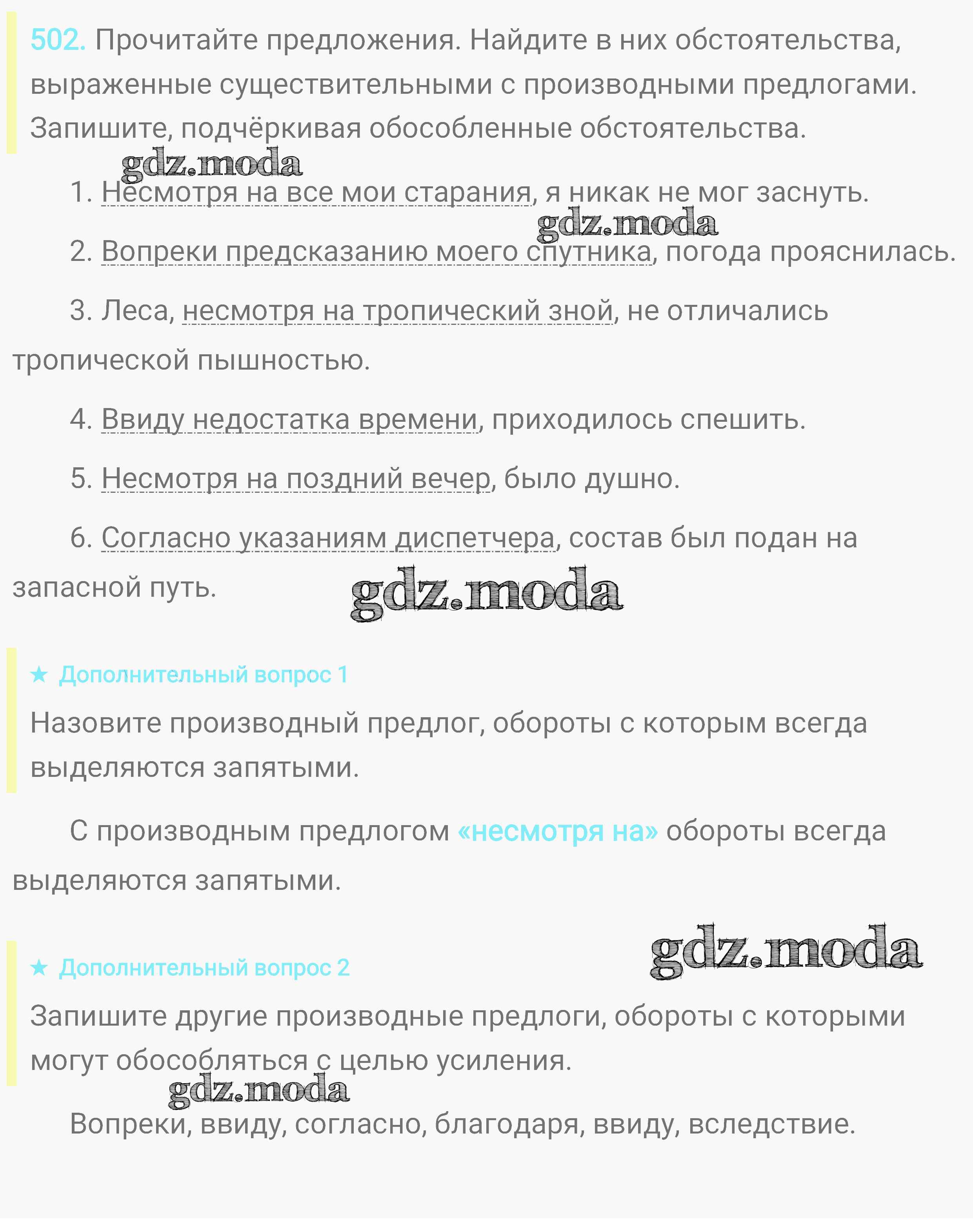 ОТВЕТ на задание № 502 Практика по Русскому языку 8 класс Пичугов Вертикаль