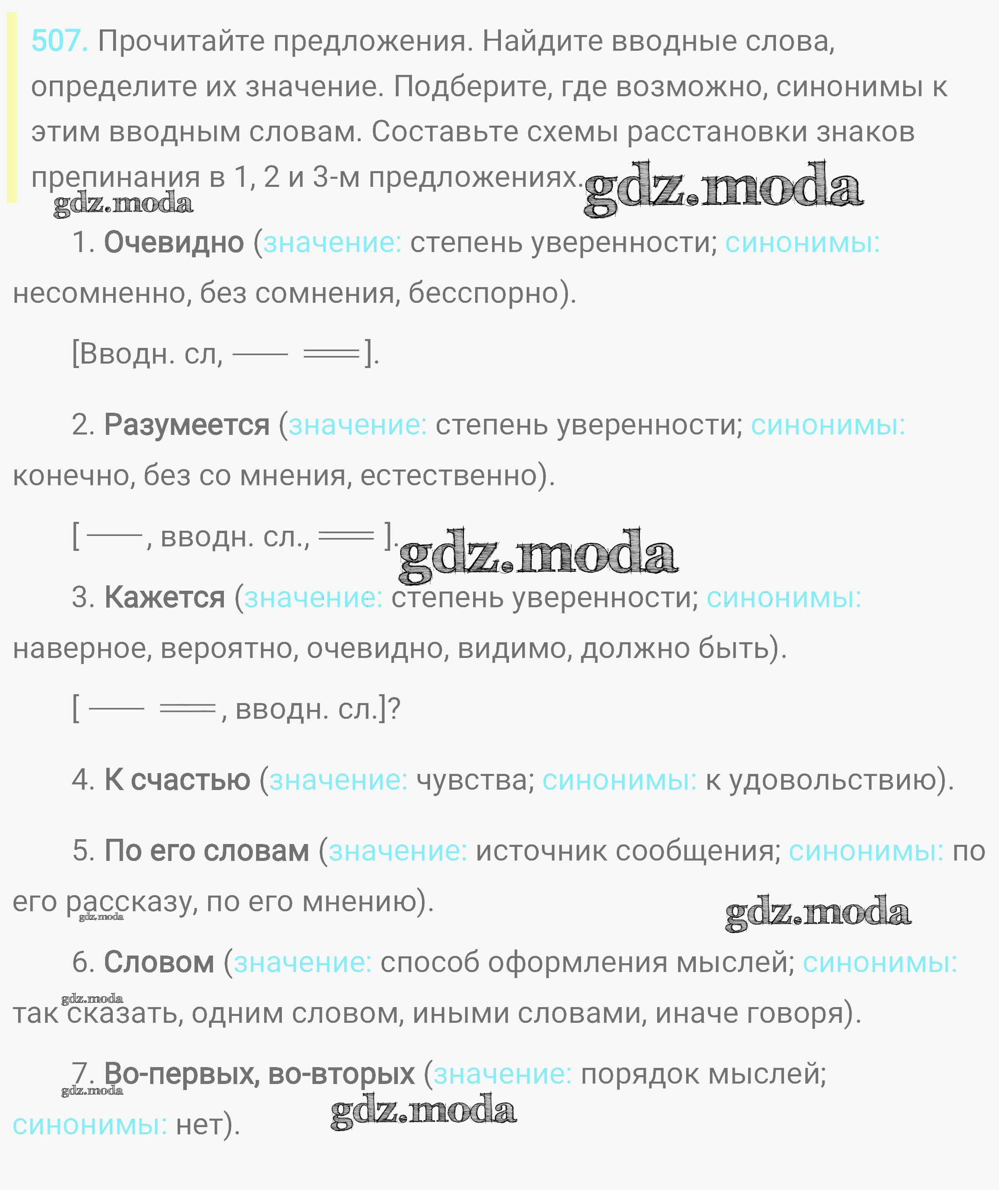ОТВЕТ на задание № 507 Практика по Русскому языку 8 класс Пичугов Вертикаль