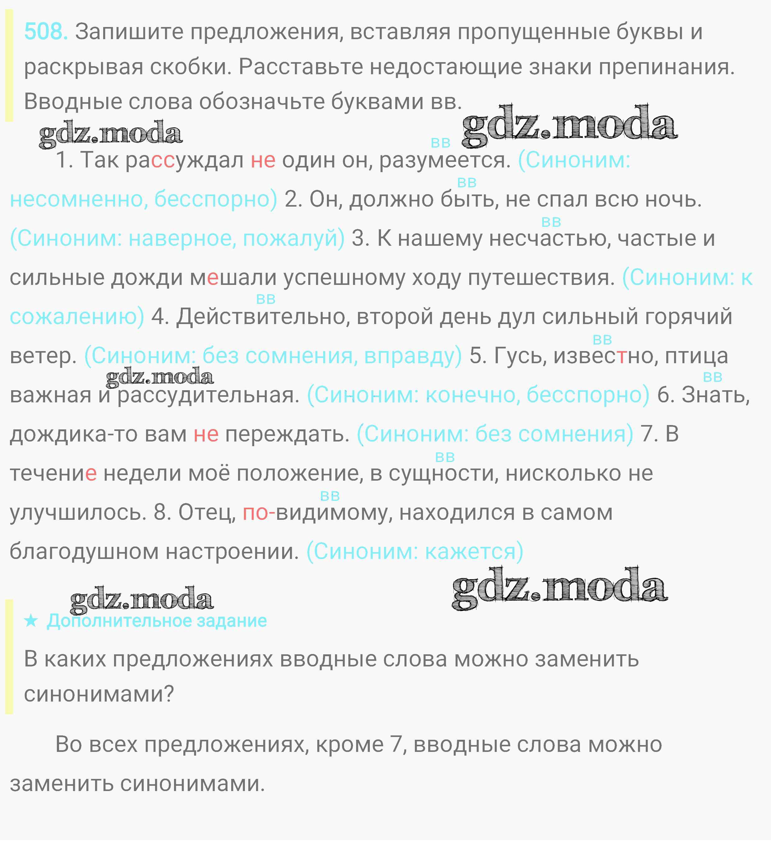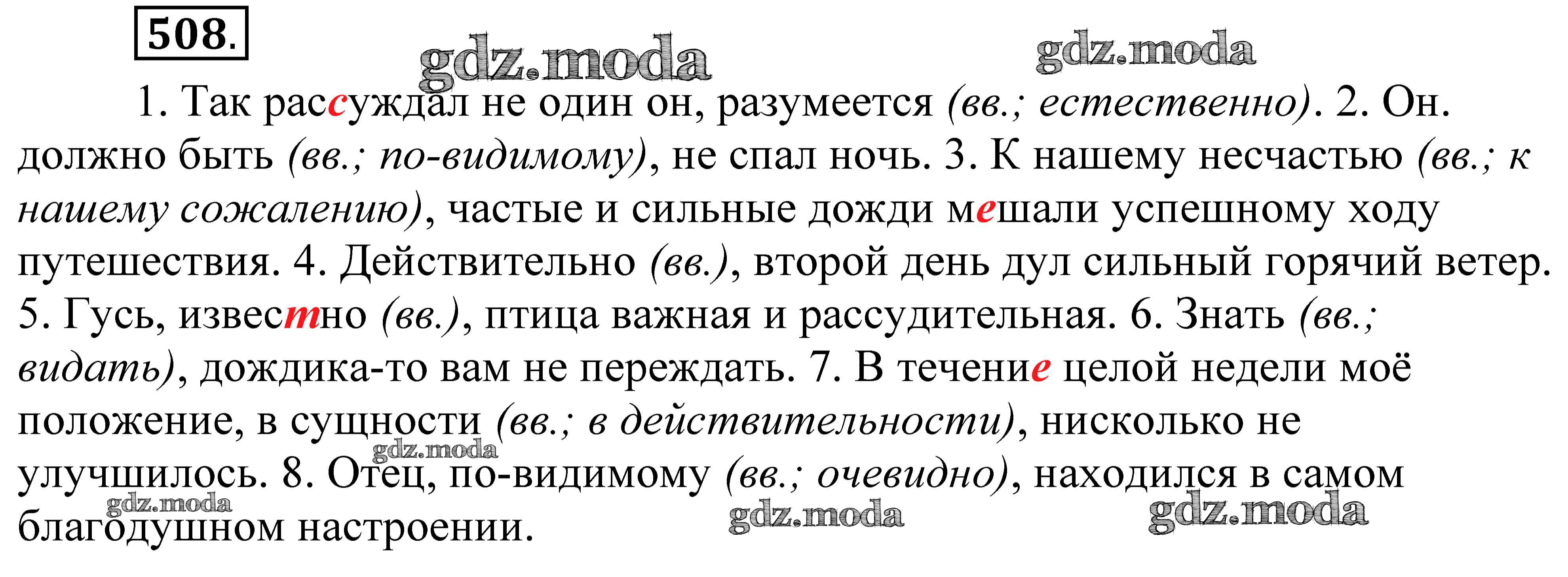 ОТВЕТ на задание № 508 Практика по Русскому языку 8 класс Пичугов Вертикаль