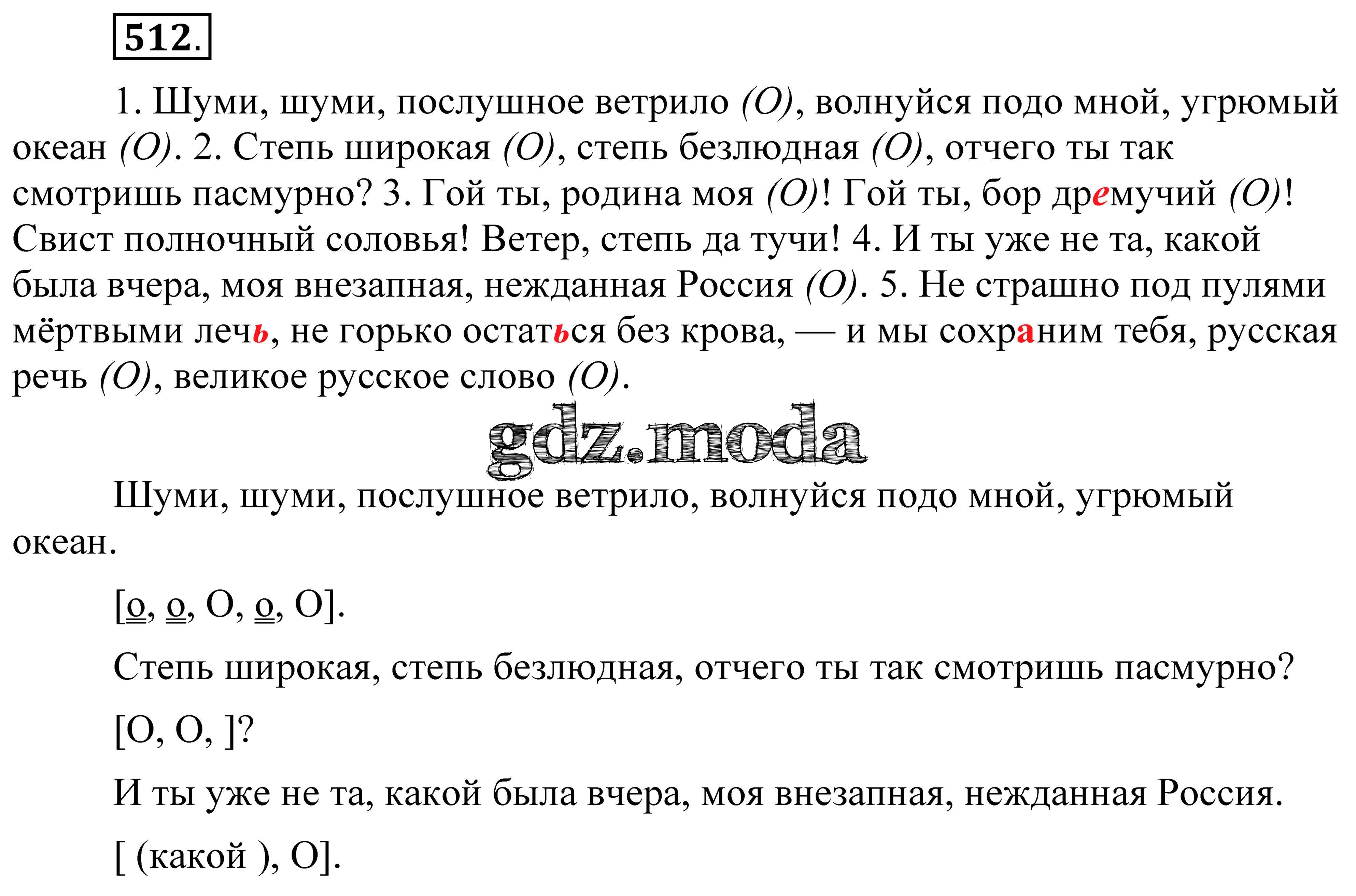 ОТВЕТ на задание № 512 Практика по Русскому языку 8 класс Пичугов Вертикаль