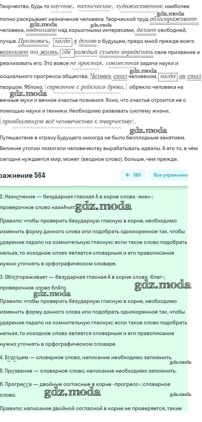 ГДЗ решение к заданию № 564 Русский язык. Практика 8 класс Пичугов Ю.С. Дрофа, Дрофа 2016, 2022 ФГОС бесплатно на гдз.мода!