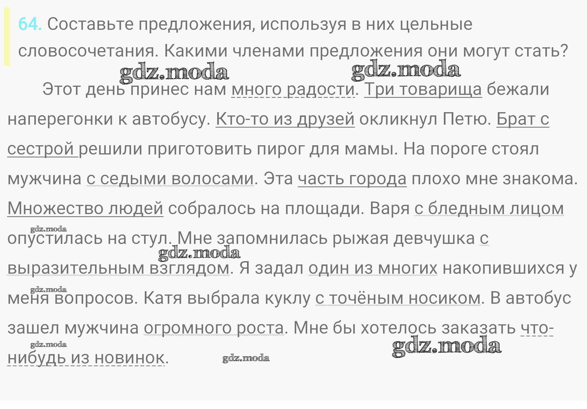 ОТВЕТ на задание № 64 Практика по Русскому языку 8 класс Пичугов Вертикаль