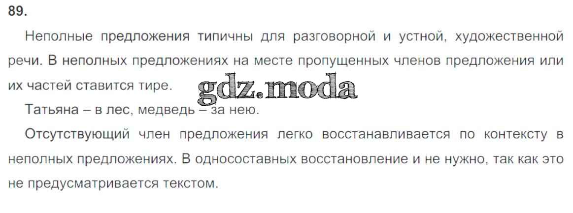 ОТВЕТ на задание № 89 Рабочая тетрадь по Русскому языку 8 класс Кулаева УМК