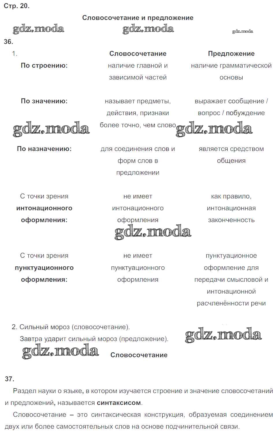 ГДЗ решение к заданию № 20 Русский язык 8 класс рабочая тетрадь Литвинова М.М. (к уч. Разумовской) Дрофа 2017 ФГОС бесплатно на гдз.мода!