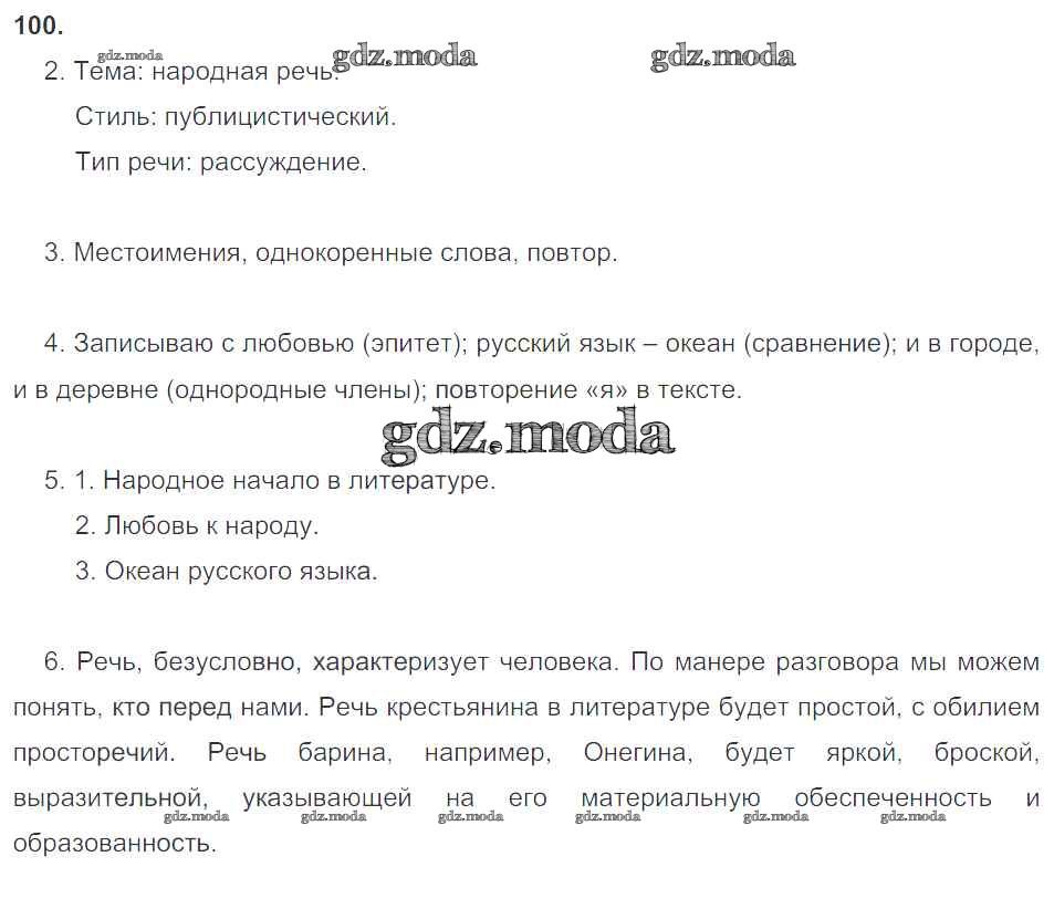 ОТВЕТ на задание № 100 Рабочая тетрадь по Русскому языку 8 класс Литвинова Вертикаль