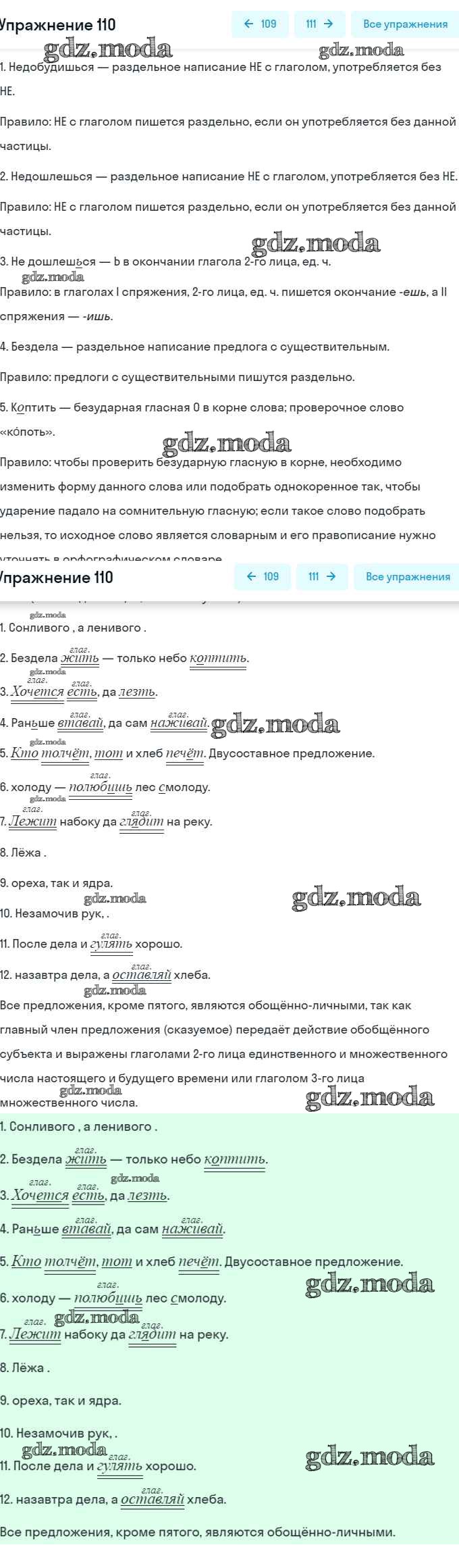 ОТВЕТ на задание № 110 Рабочая тетрадь по Русскому языку 8 класс Литвинова Вертикаль