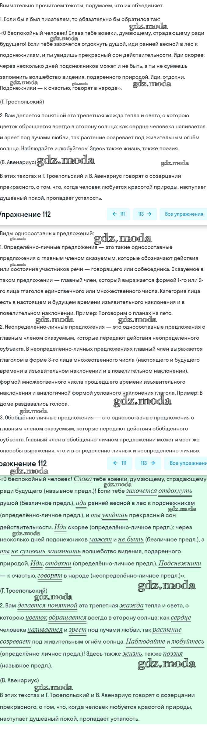 ОТВЕТ на задание № 112 Рабочая тетрадь по Русскому языку 8 класс Литвинова Вертикаль