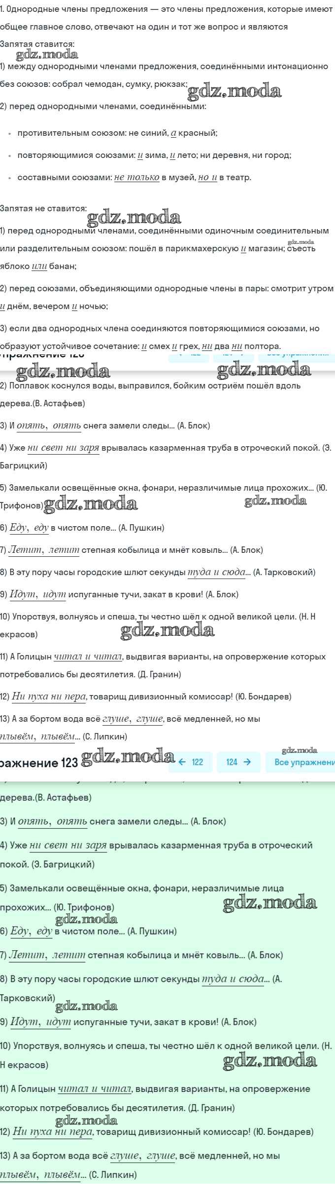 ОТВЕТ на задание № 123 Рабочая тетрадь по Русскому языку 8 класс Литвинова Вертикаль