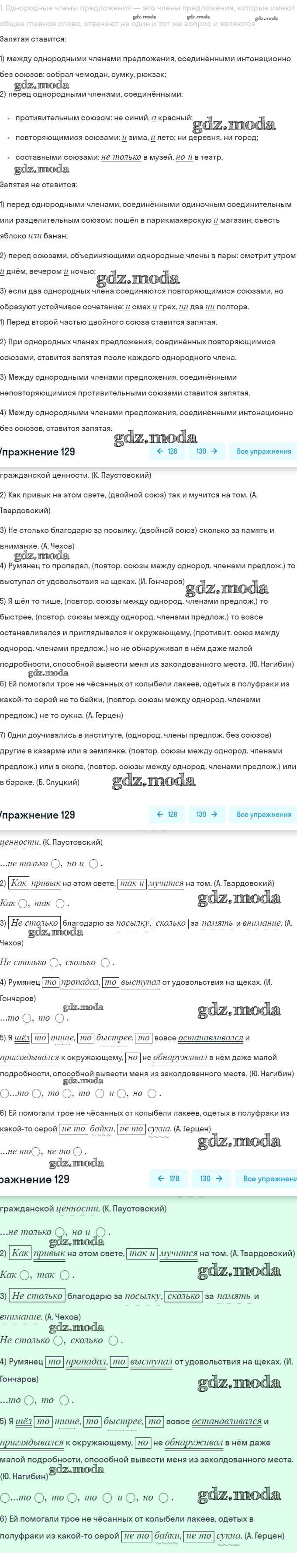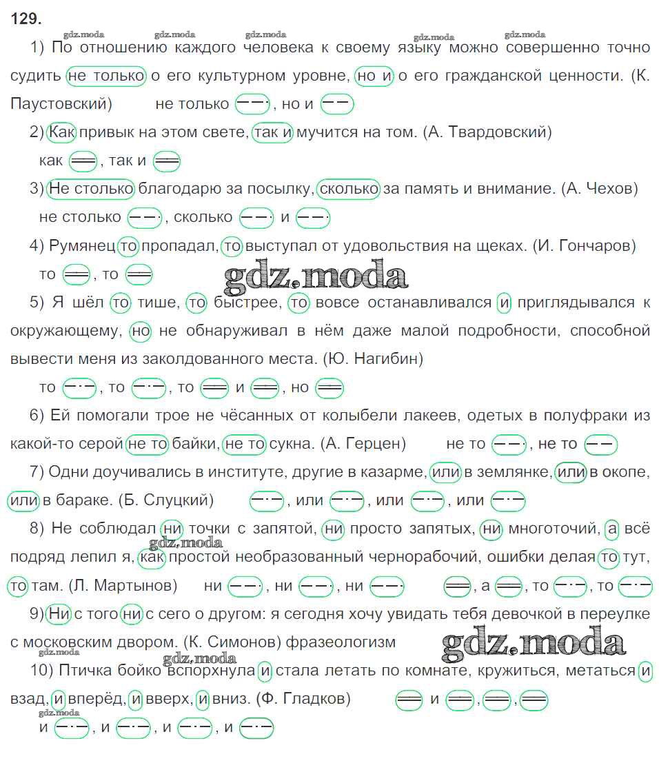 ОТВЕТ на задание № 129 Рабочая тетрадь по Русскому языку 8 класс Литвинова Вертикаль