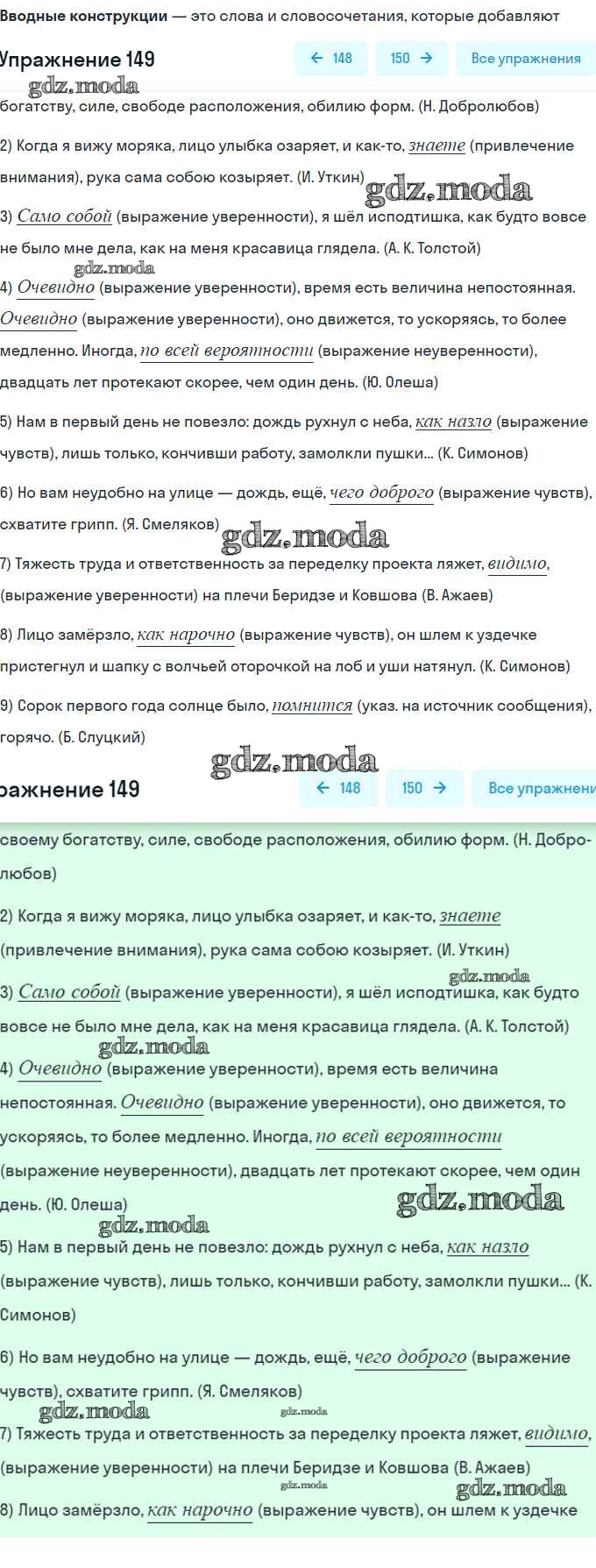 ОТВЕТ на задание № 149 Рабочая тетрадь по Русскому языку 8 класс Литвинова Вертикаль