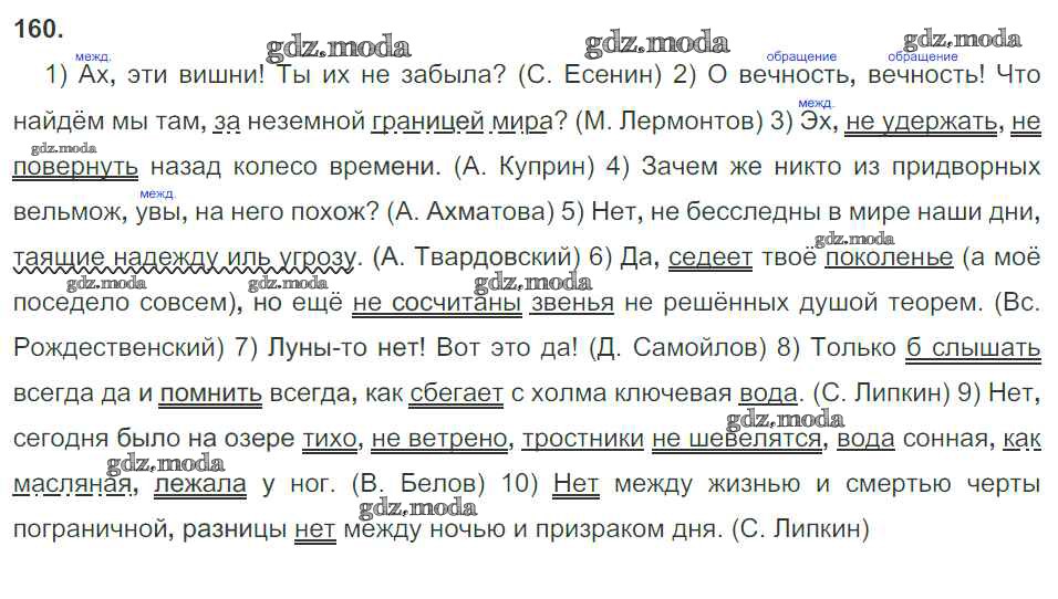 ОТВЕТ на задание № 160 Рабочая тетрадь по Русскому языку 8 класс Литвинова Вертикаль